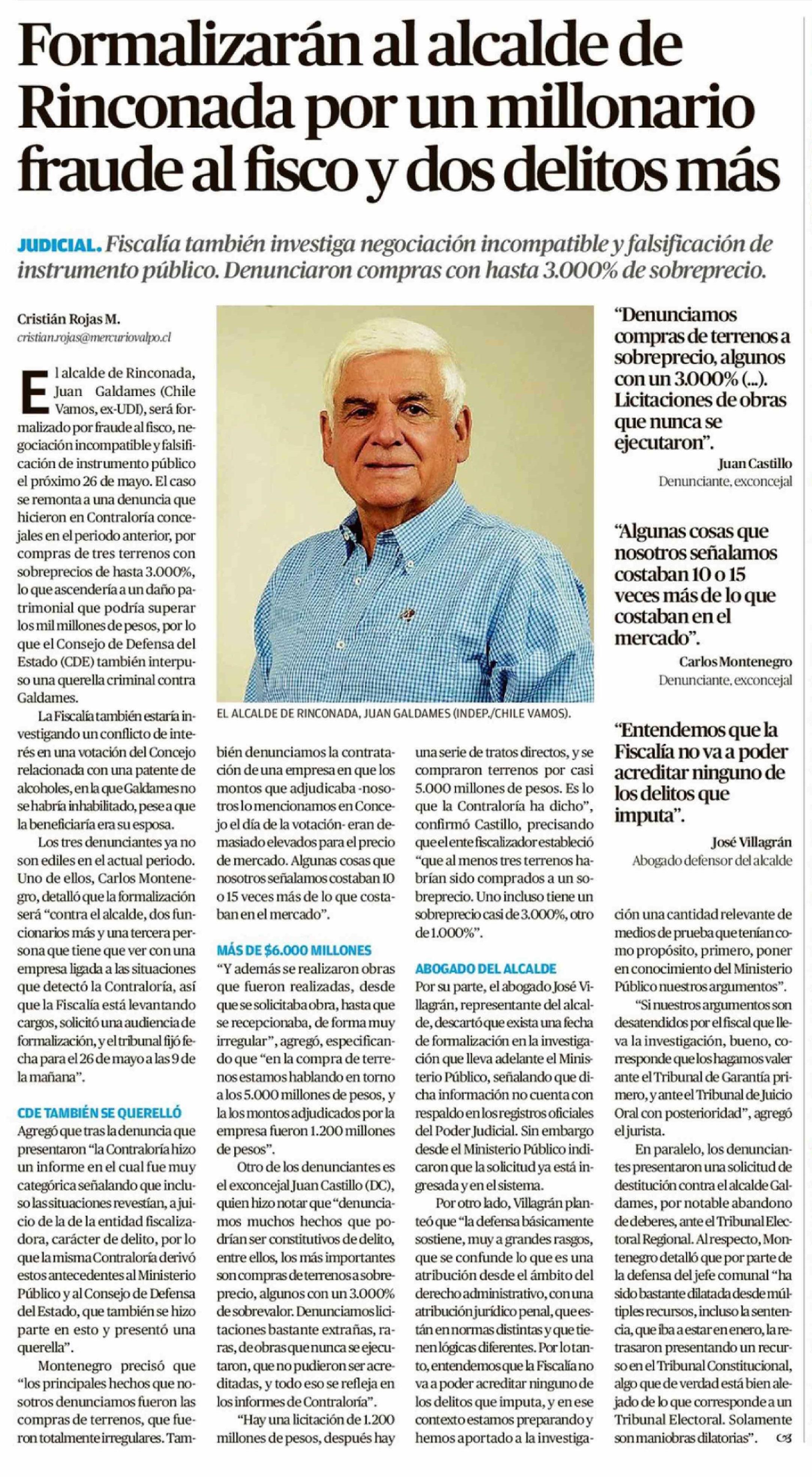 Formalizarán al alcalde de Rinconada por un millonario fraude al fisco y dos delitos más 15-04-2026 El Mercurio de Valparaíso |