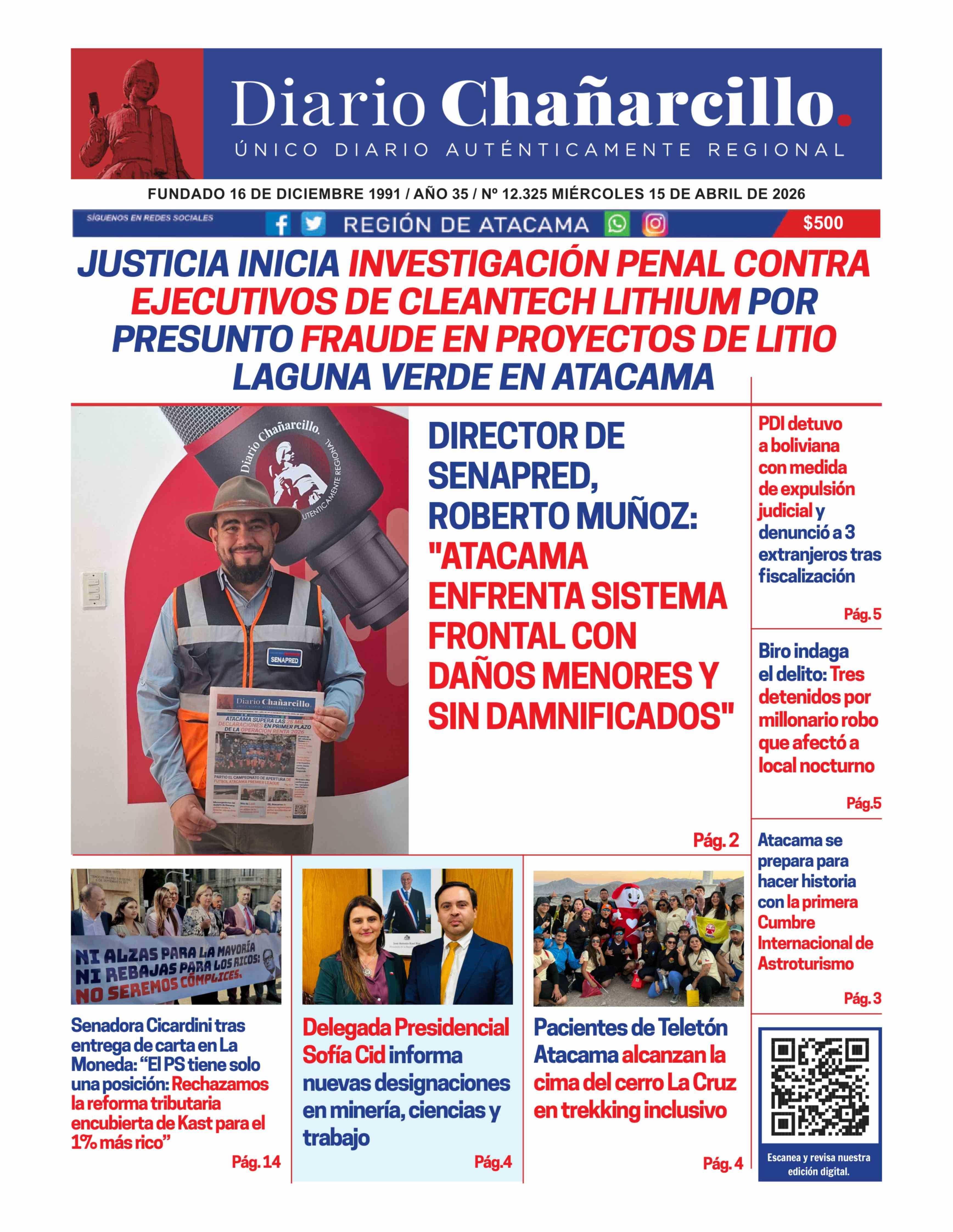 | Fecha: | 15-04-2026 | Sector: | Portada | Región: | Región de Atacama |