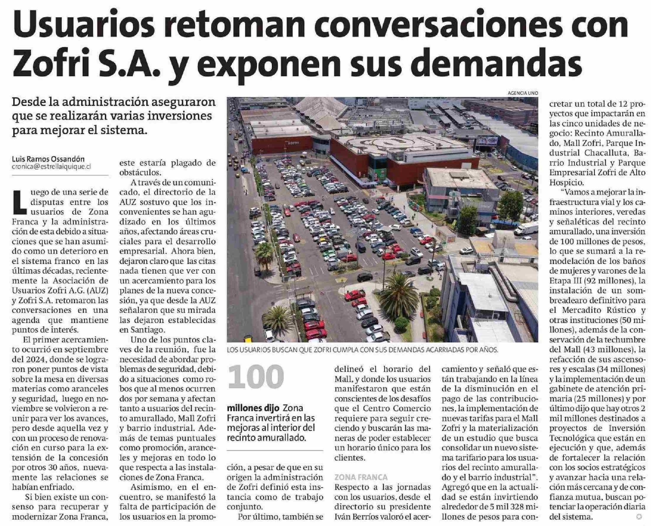 Usuarios retoman conversaciones con Zofri S.A. y exponen sus demandas 24-06-2025 La Estrella de Iquique |