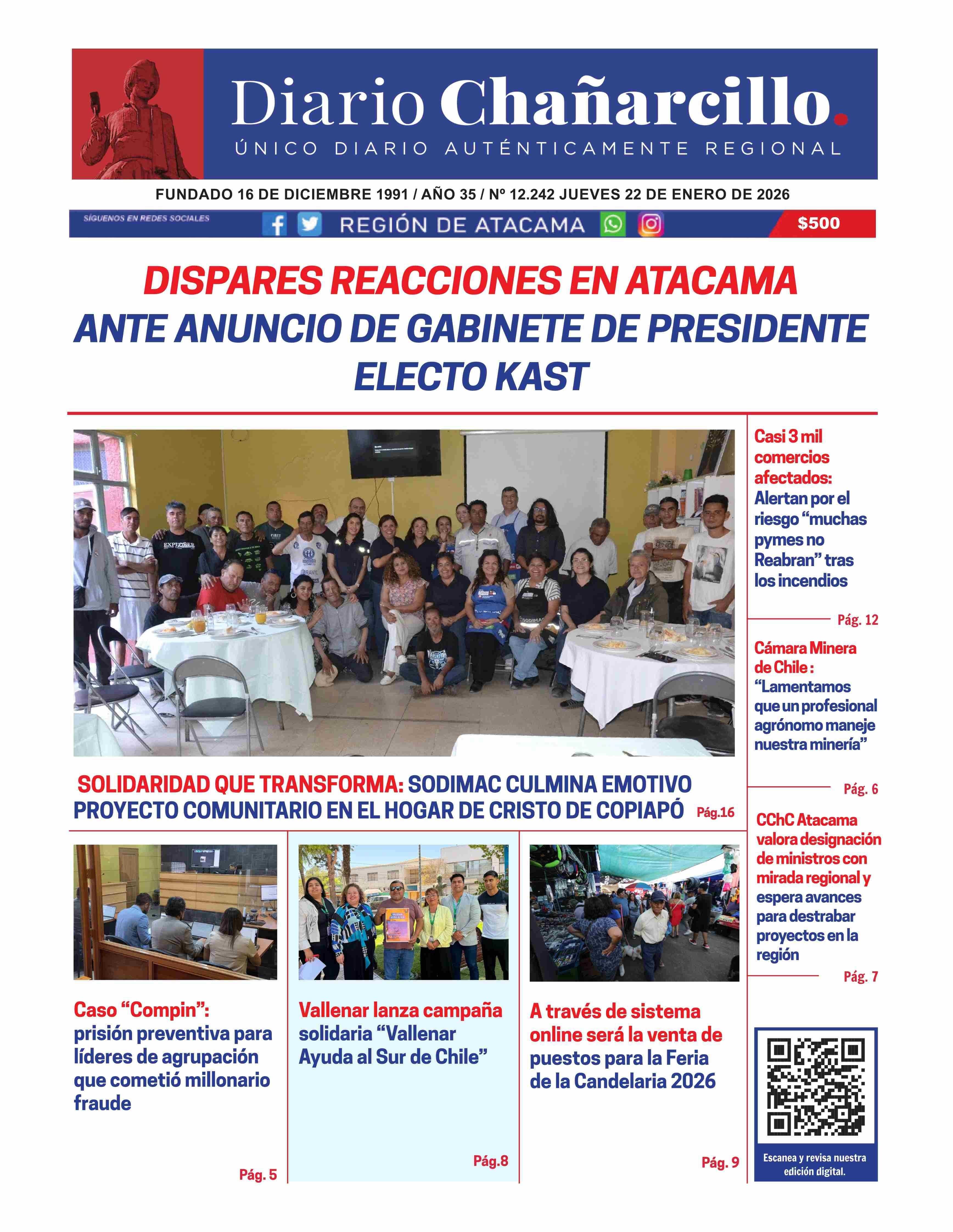 | Fecha: | 22-01-2026 | Sector: | Portada | Región: | Región de Atacama |