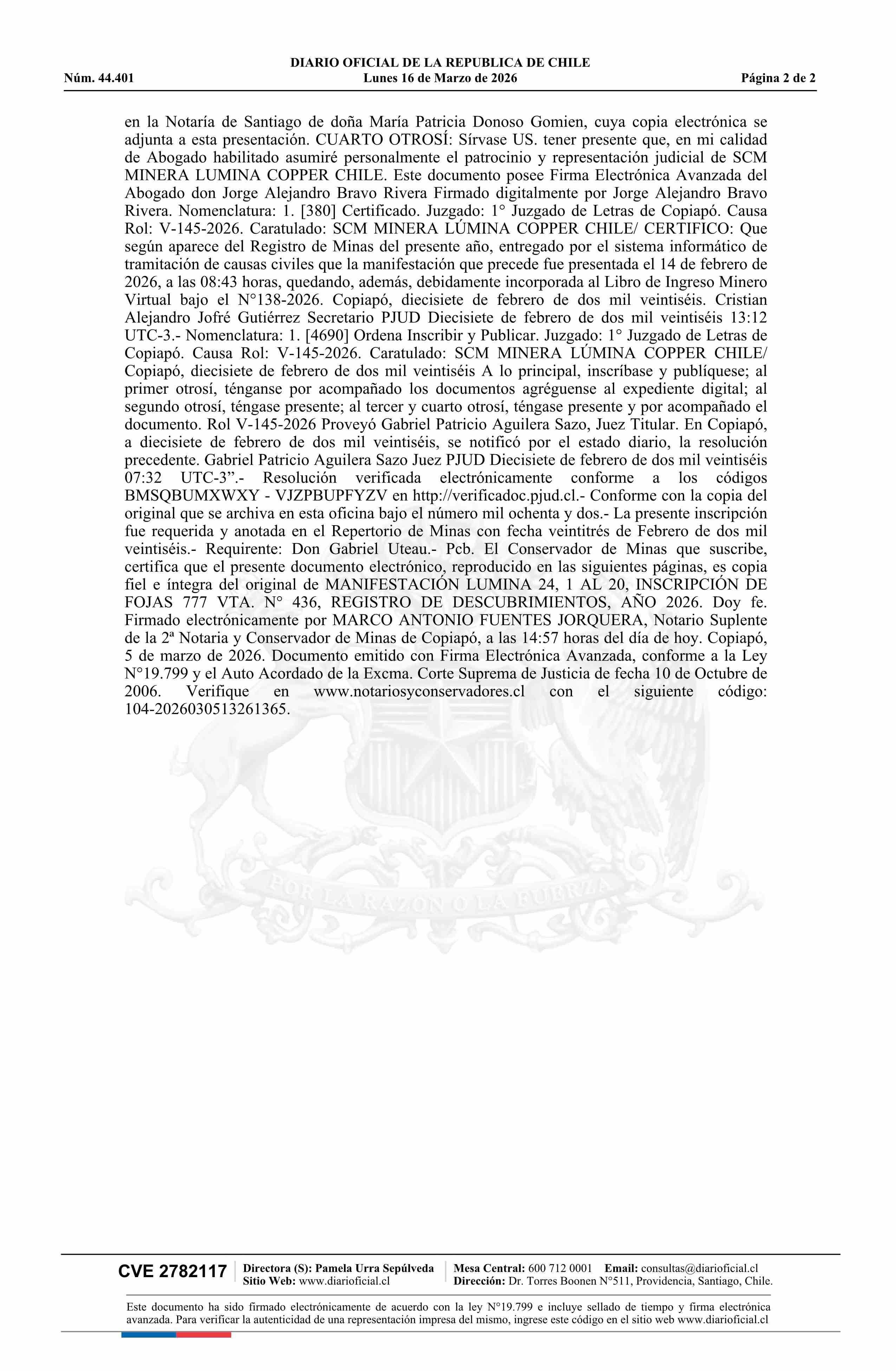16-03-2026 DIARIO OFICIAL CHILE - BOLETÍN OFICIAL DE MINERÍA