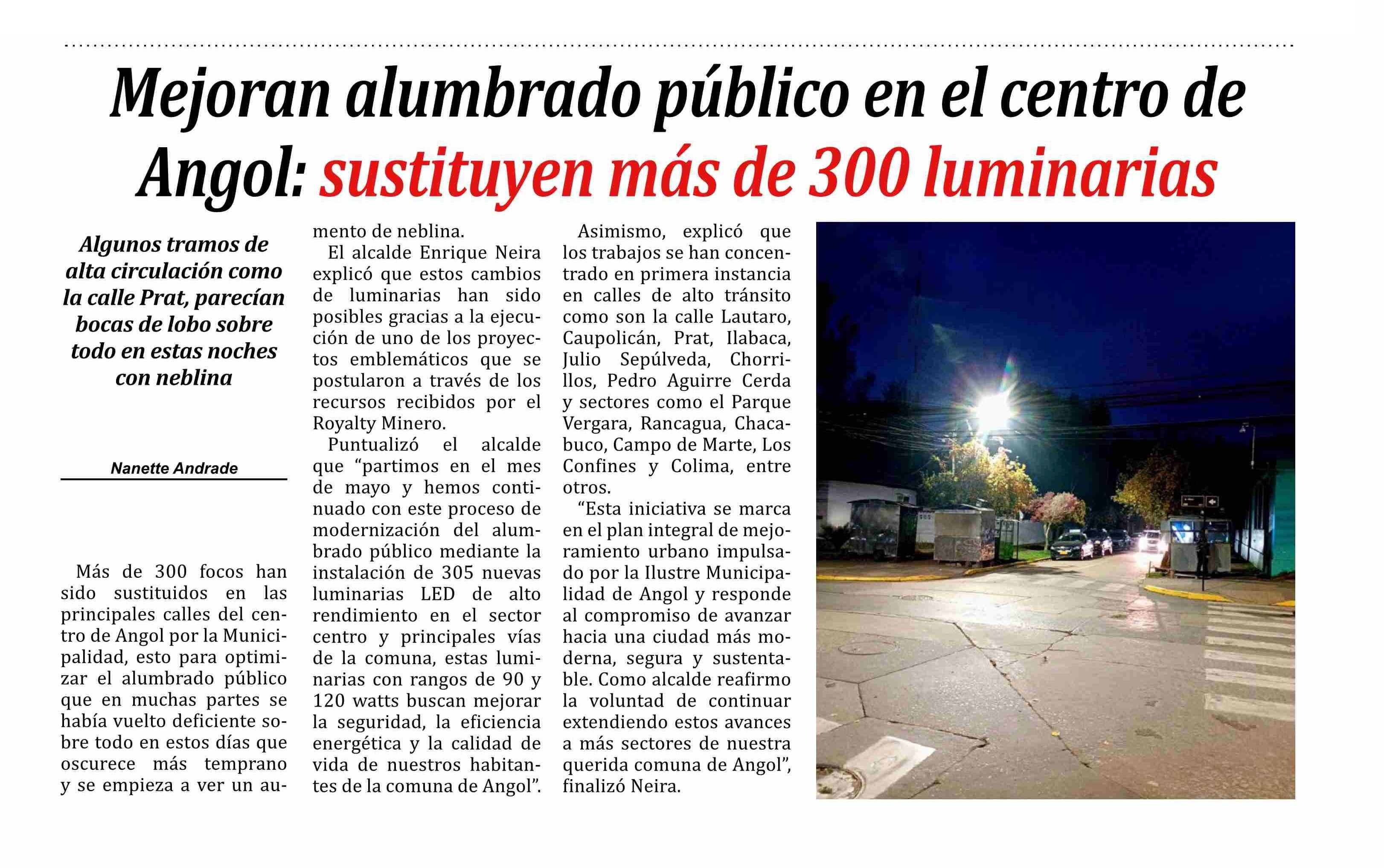 | Título: | Mejoran alumbrado público en el centro de Angol: sustituyen más de 300 luminarias |