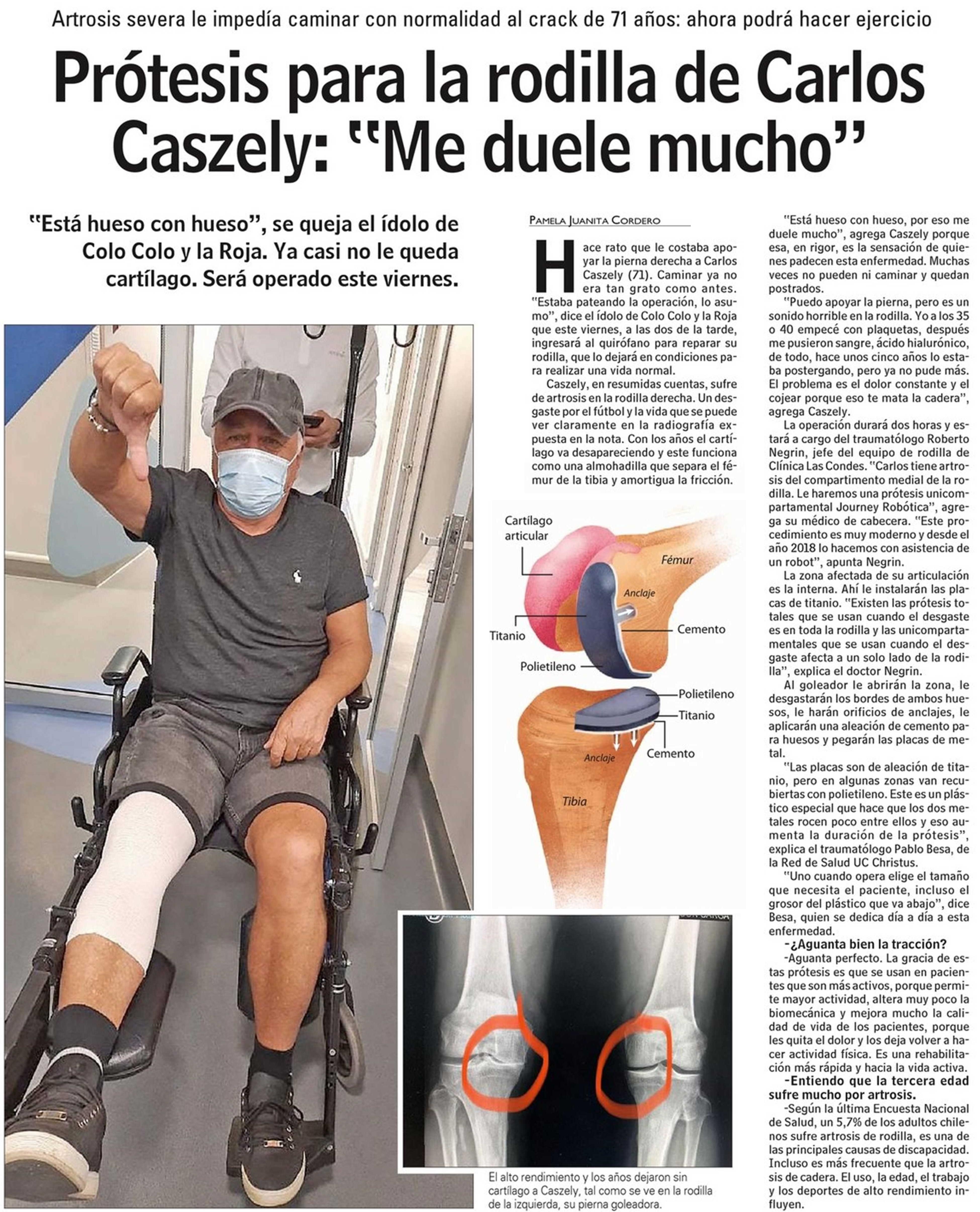 Prótesis para la rodilla de Carlos Caszely: "Me duele mucho" 23-07-2021 Las Últimas Noticias |