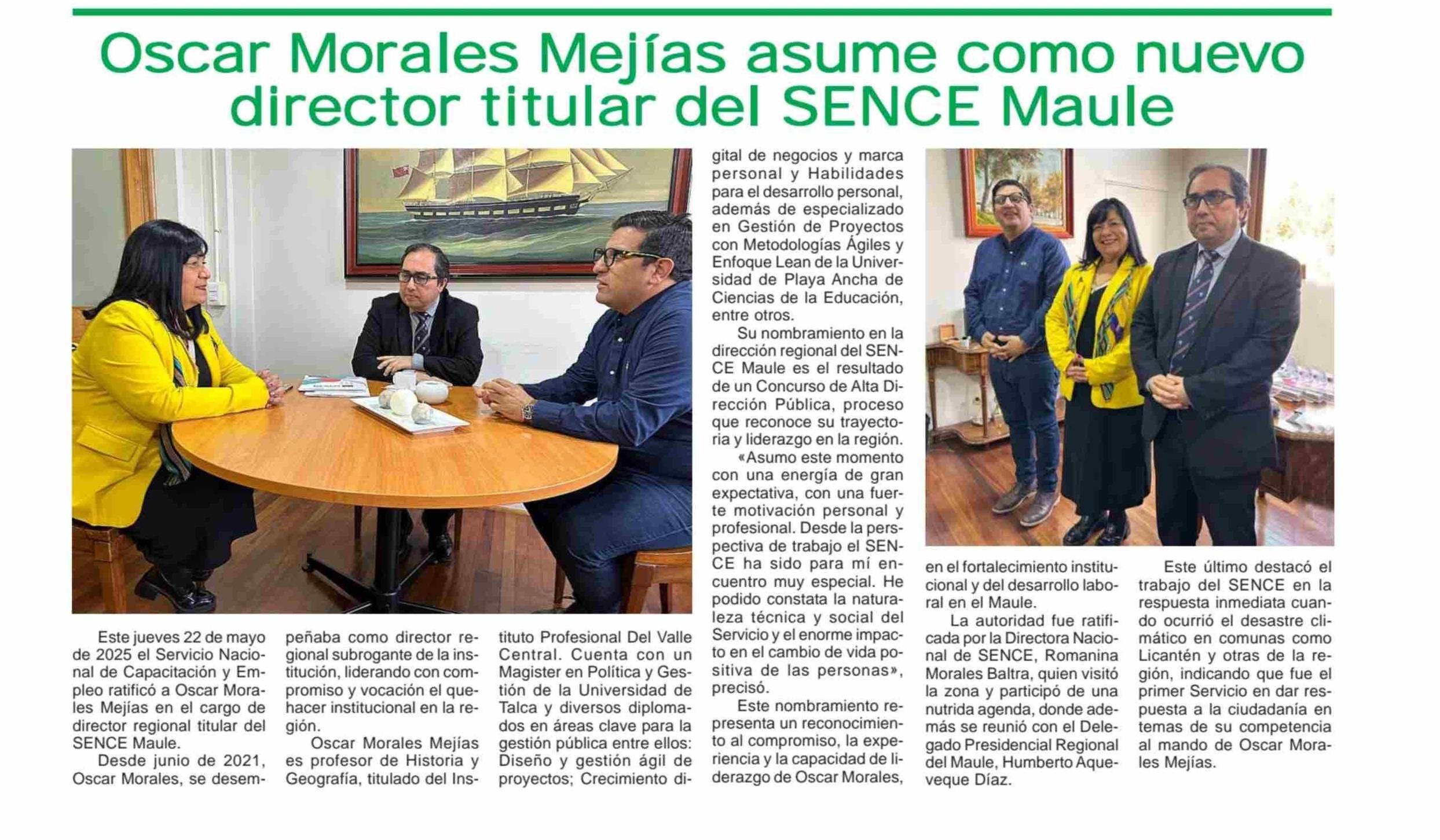 Oscar Morales Mejías asume como nuevo director titular del SENCE Maule 24-05-2025 Maule Hoy |