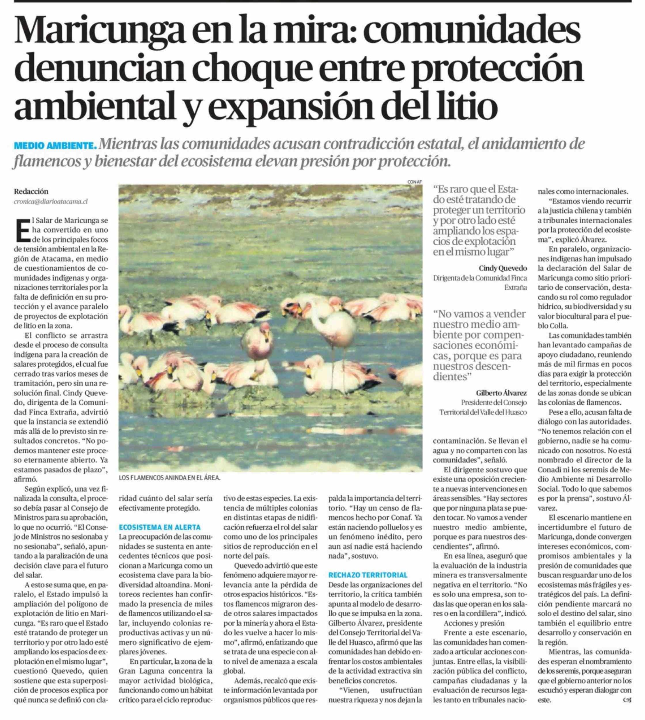 Maricunga en la mira: comunidades denuncian choque entre protección ambiental y expansión del litio 20-03-2026 El Diario de Atacama |