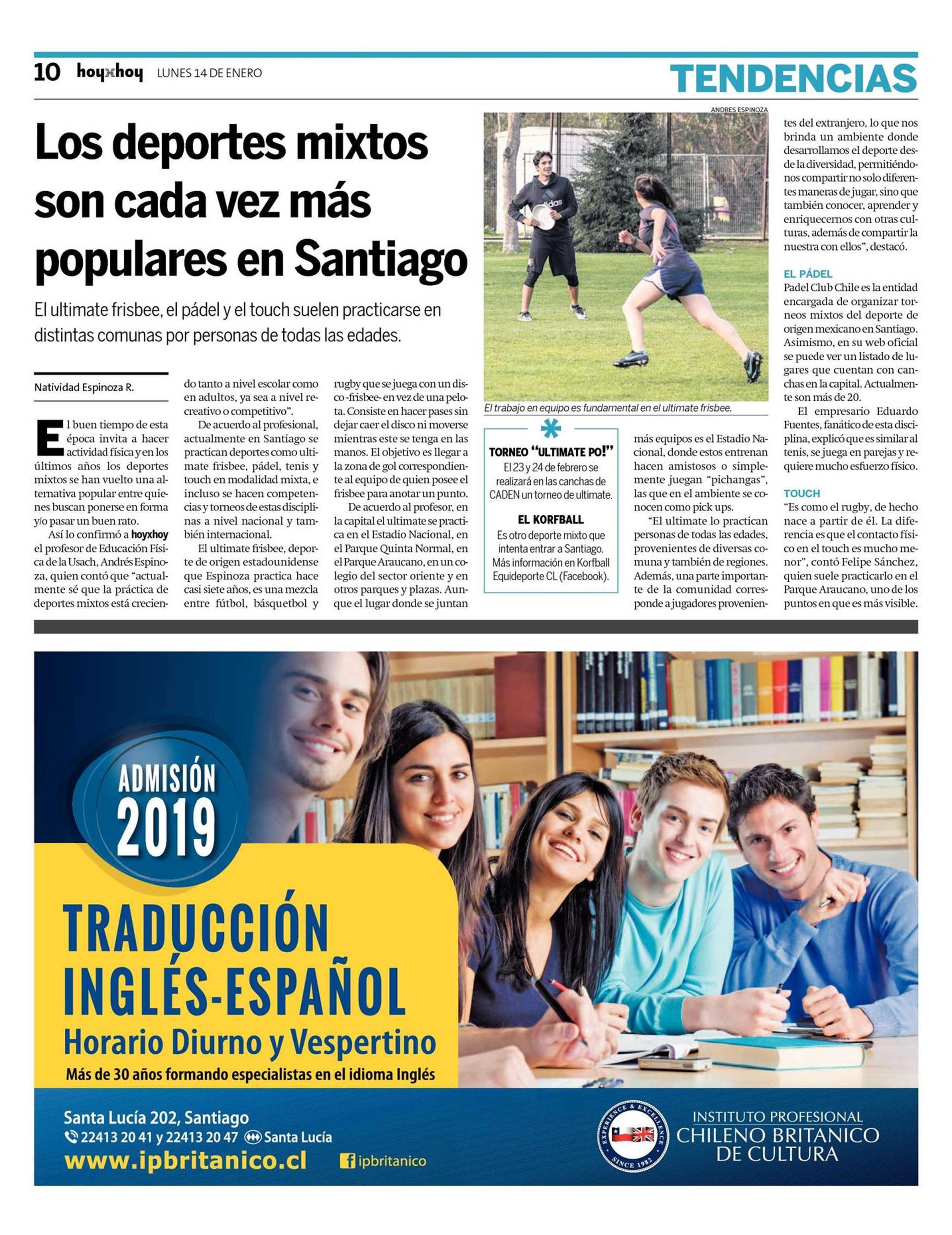 Los deportes mixtos son cada vez más populares en santiago 14-01-2019 Hoy x Hoy |