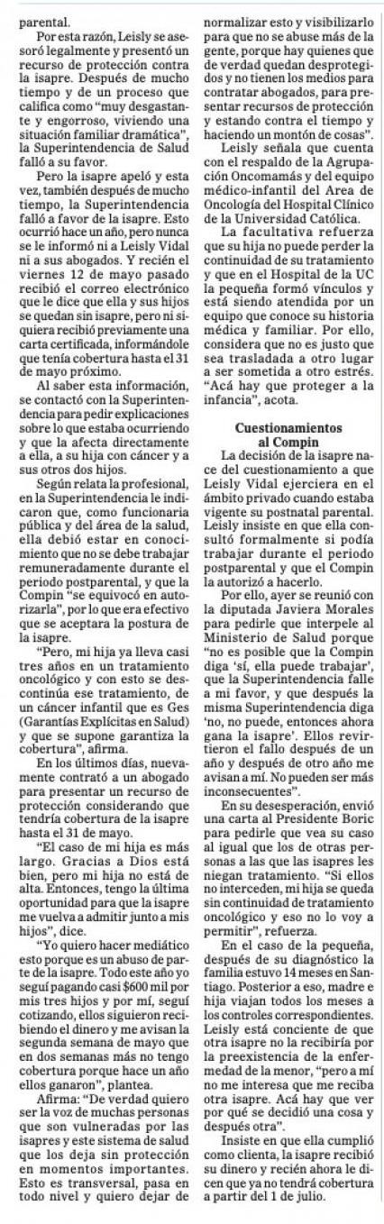 Médico acusa a isapre de dejarla sin cobertura a ella ya hija de 3 años con tratamiento de cáncer 21-05-2023 El Magallanes |