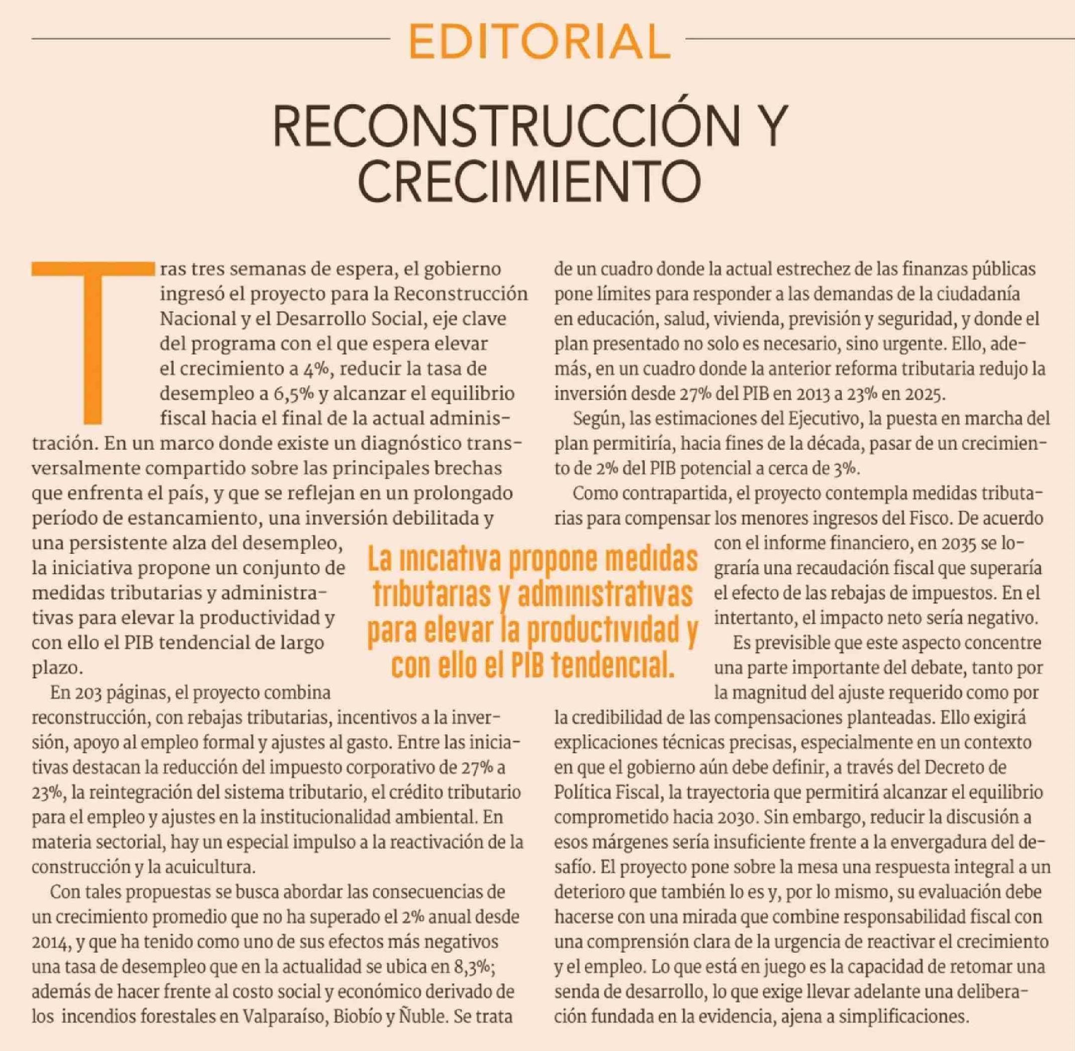 Editorial: RECONSTRUCCIÓN Y CRECIMIENTO 23-04-2026 Diario Financiero |