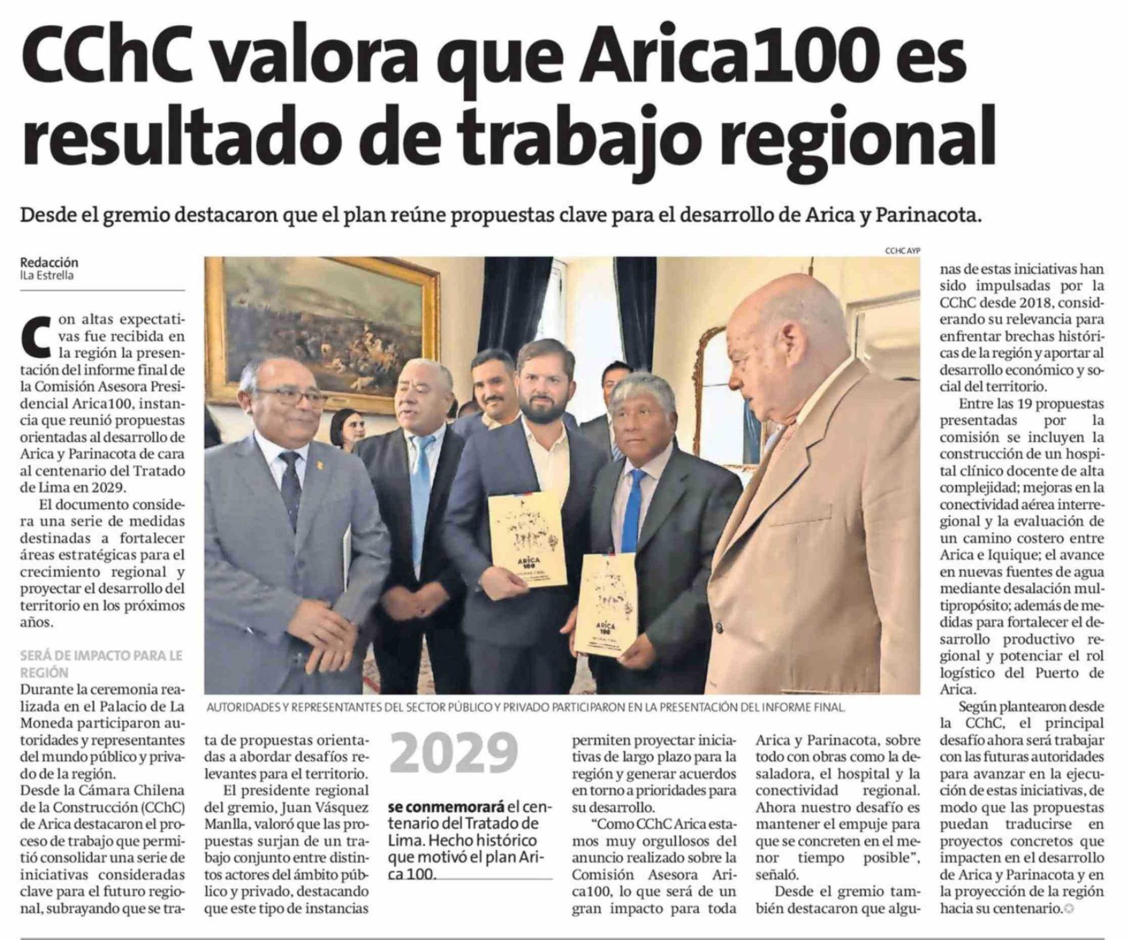 Título: CChC valora que Arica100 es resultado de trabajo regional