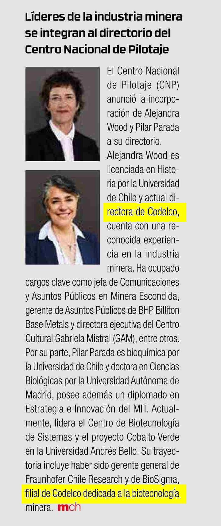 Líderes de la industria minera se integran al directorio del Centro Nacional de Pilotaje 27-05-2025 Revista Minería Chilena |