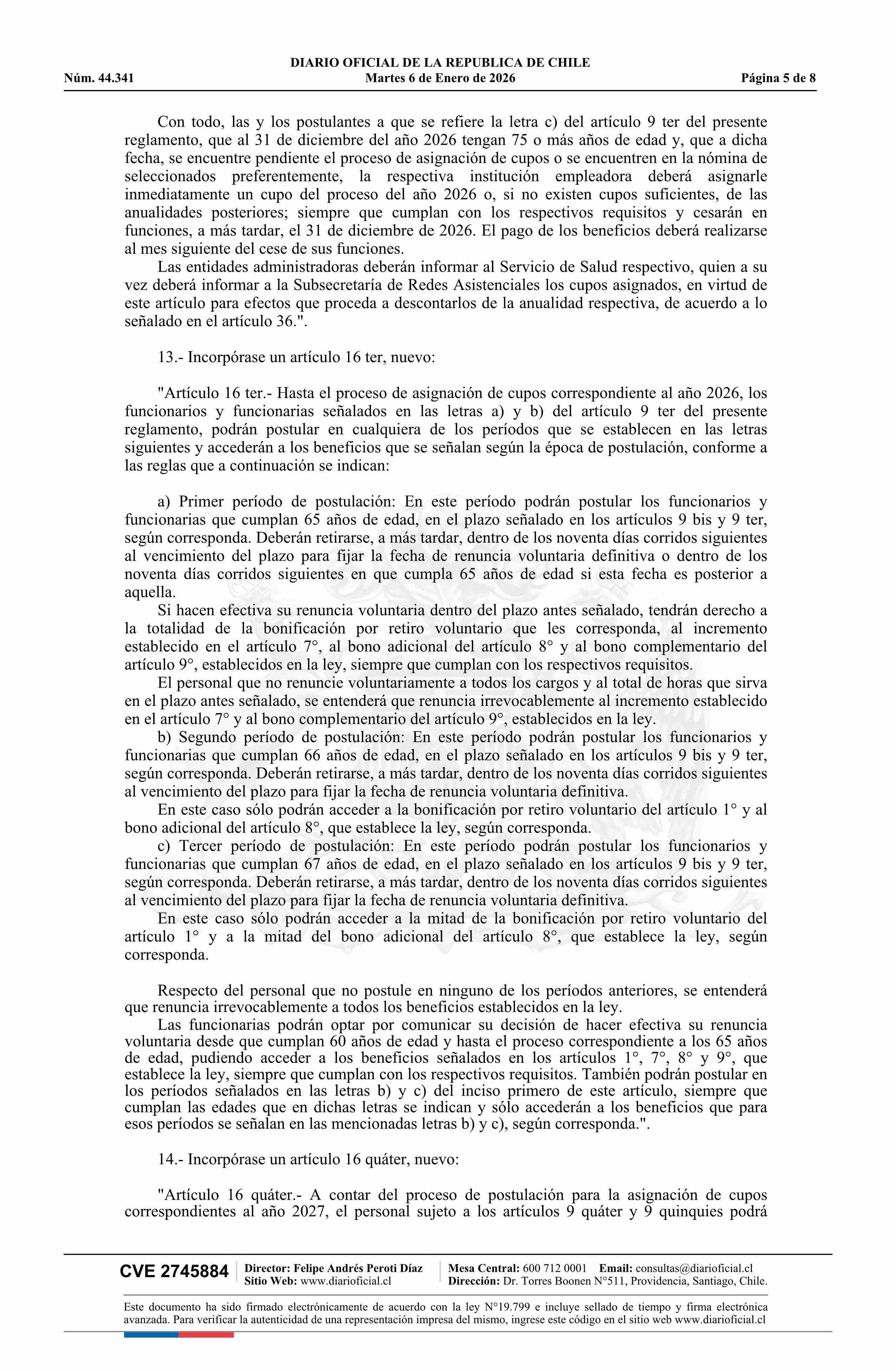 | Título: | Decreto número 13, de 2025.- Modifica decreto N° 26, de 2016, Reglamento para el otorgamiento de la bonificación por retiro voluntario y otros beneficios establecidos en la ley N° 20.919 |