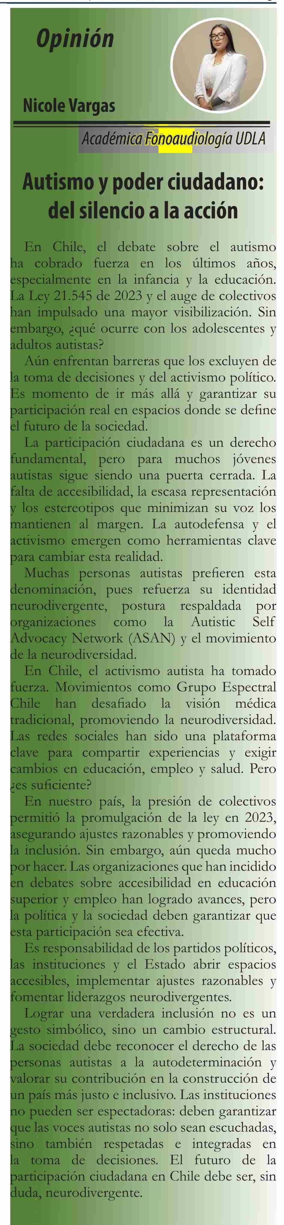 | Título: | Columnas de Opinión: Autismo y poder ciudadano: del silencio a la acción |