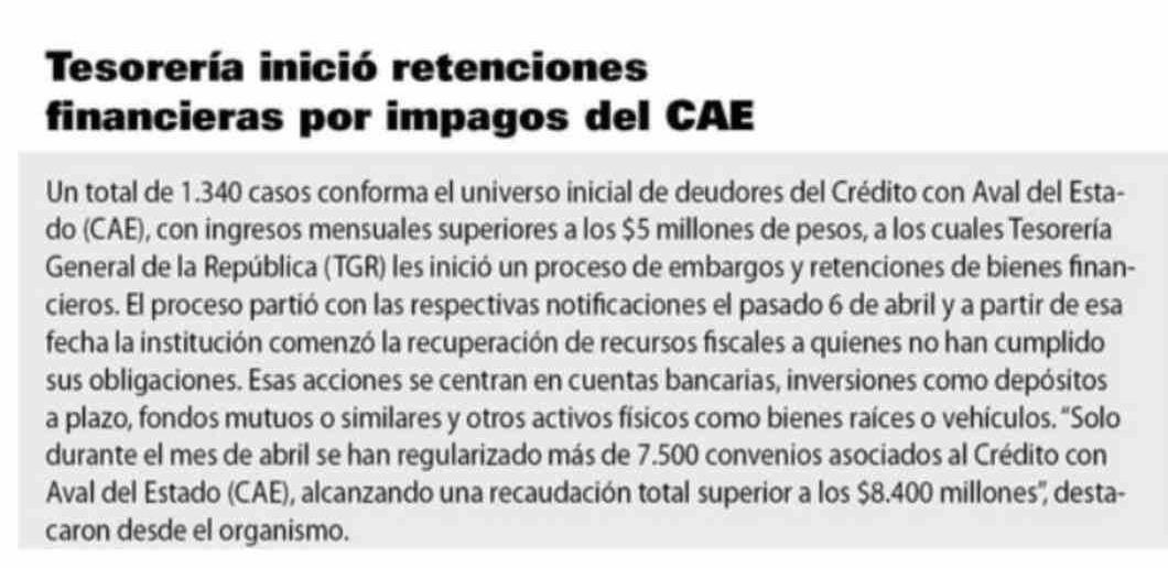 Título: Tesorería inició retenciones financieras por impagos del CAE