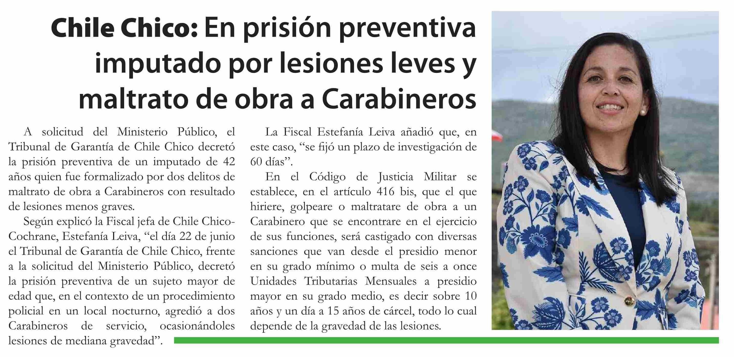 Título: Chile Chico: En prisión preventiva imputado por lesiones leves y maltrato de obra a Carabineros