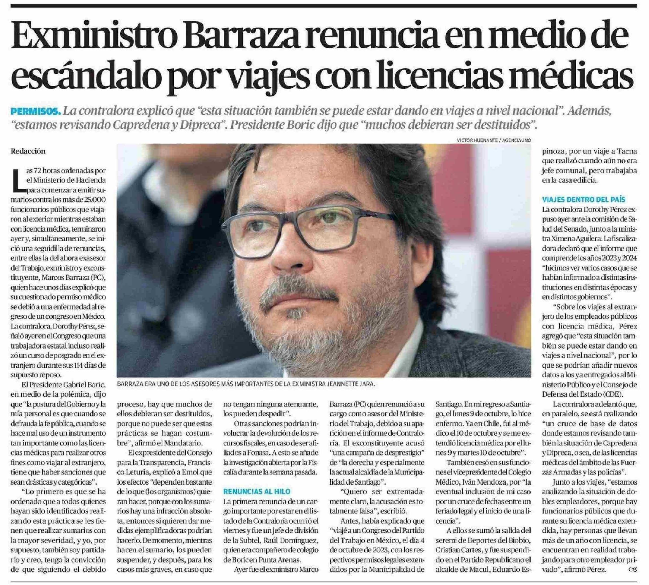 Exministro Barraza renuncia en medio de escándalo por viajes con licencias médicas 27-05-2025 El Diario de Atacama |
