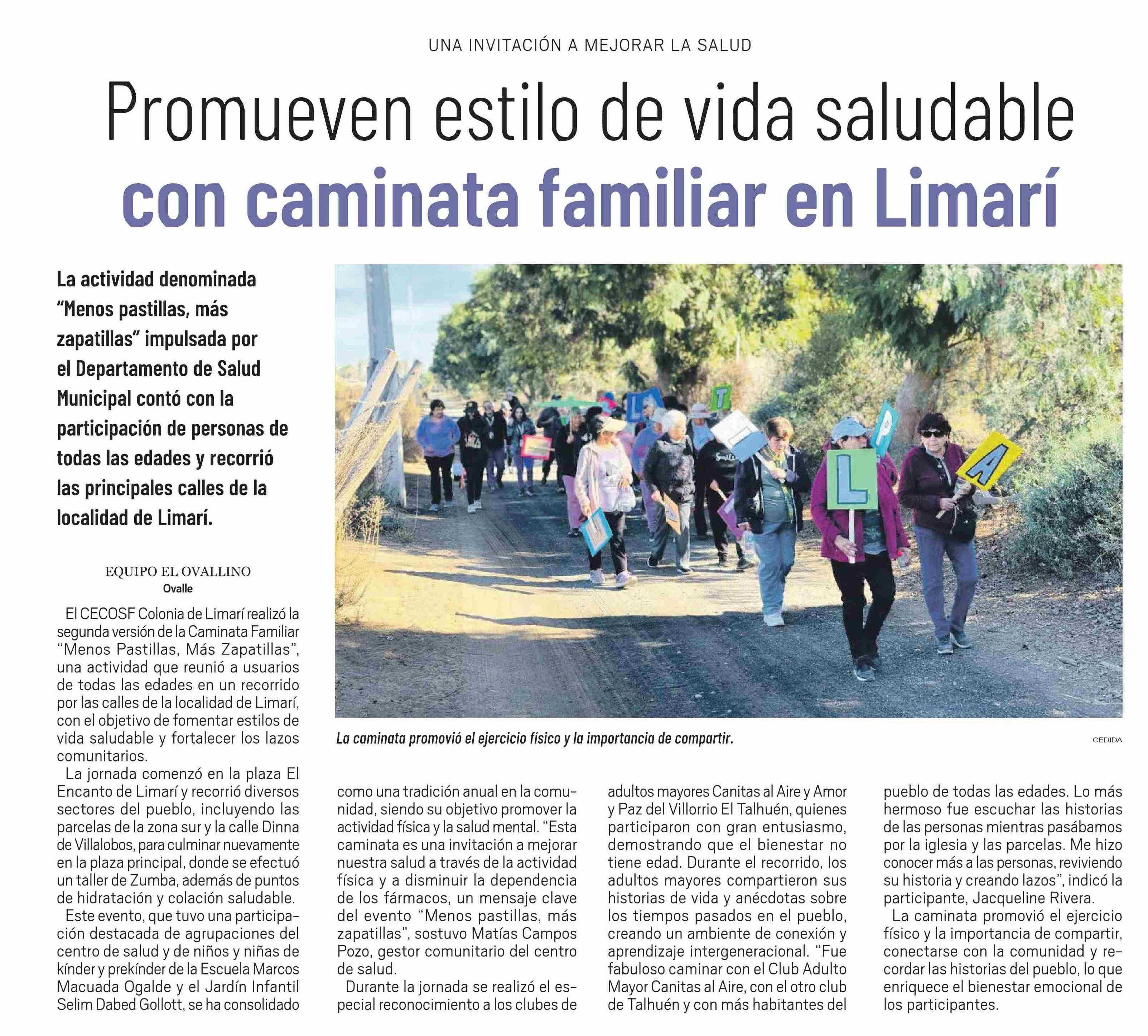 Promueven estilo de vida saludable con caminata familiar en Limarí 03-06-2025 El Ovallino |