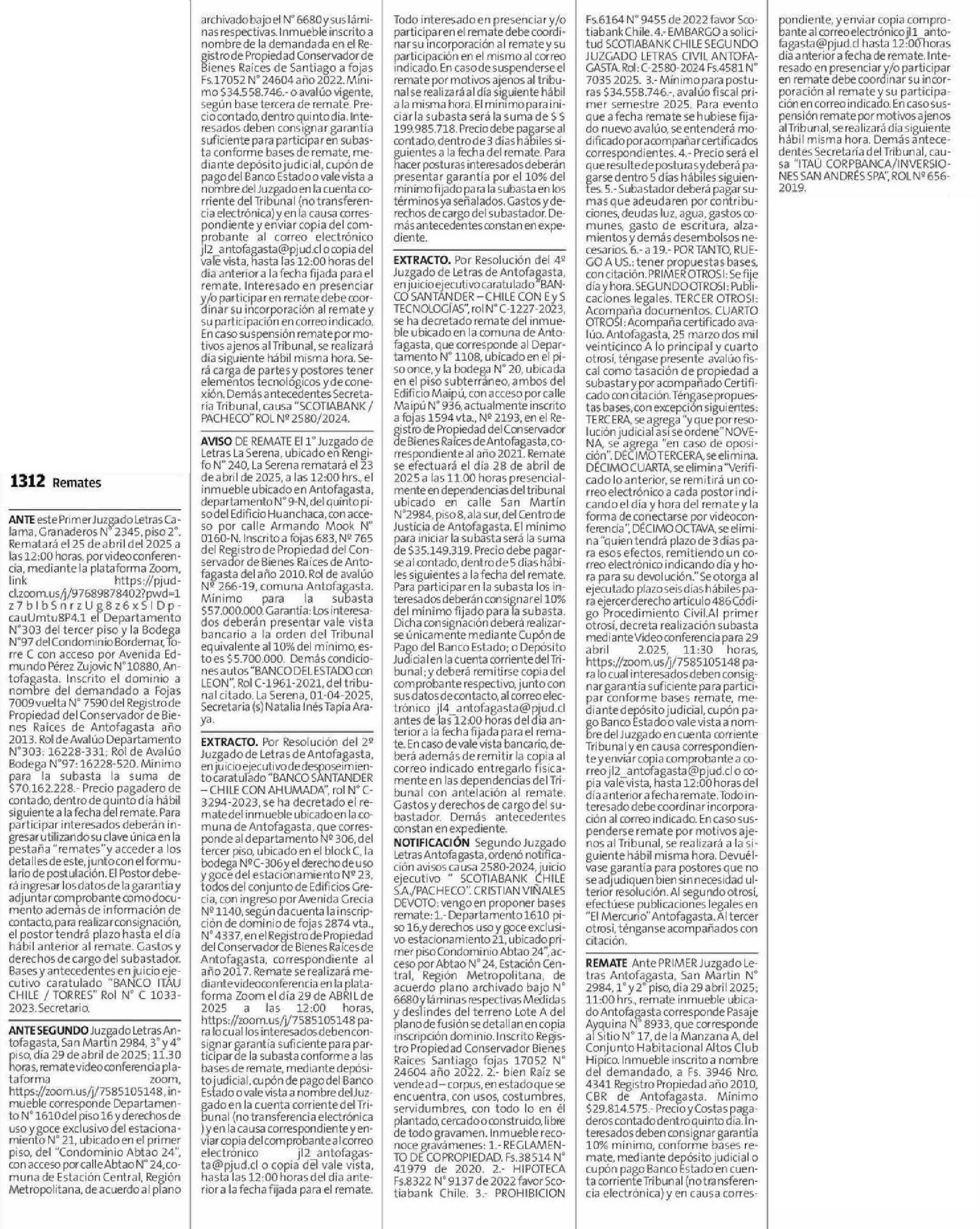 REMATES: 10-04-2025 El Mercurio de Antofagasta |