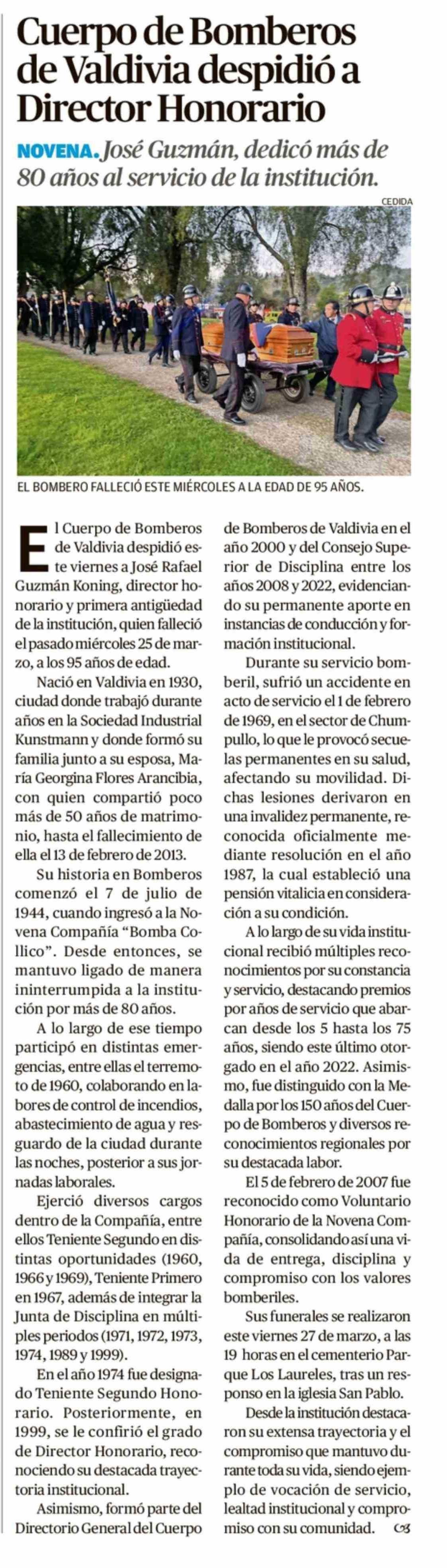 Título: Cuerpo de Bomberos de Valdivia despidió a Director Honorario