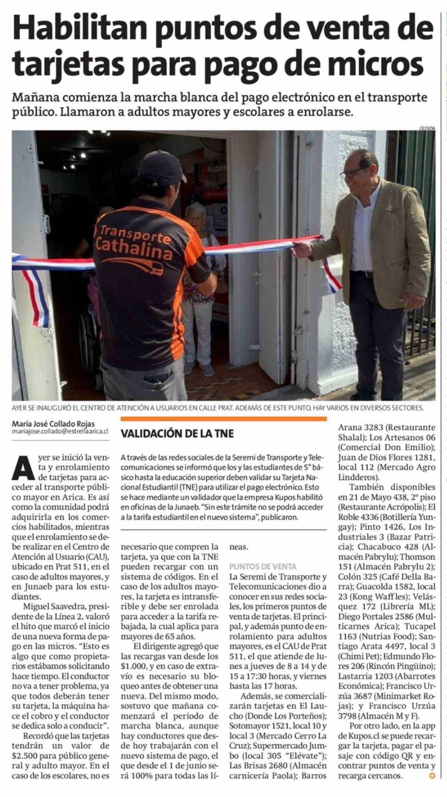 Título: Habilitan puntos de venta de tarjetas para pago de micros