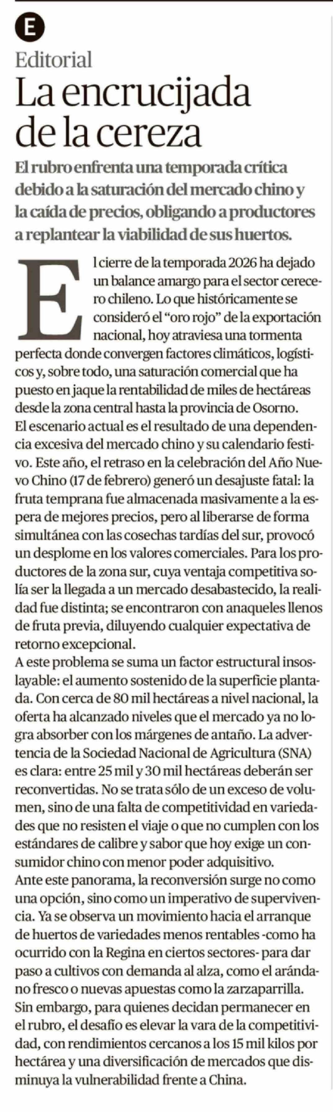 Título: Editorial: La encrucijada de la cereza