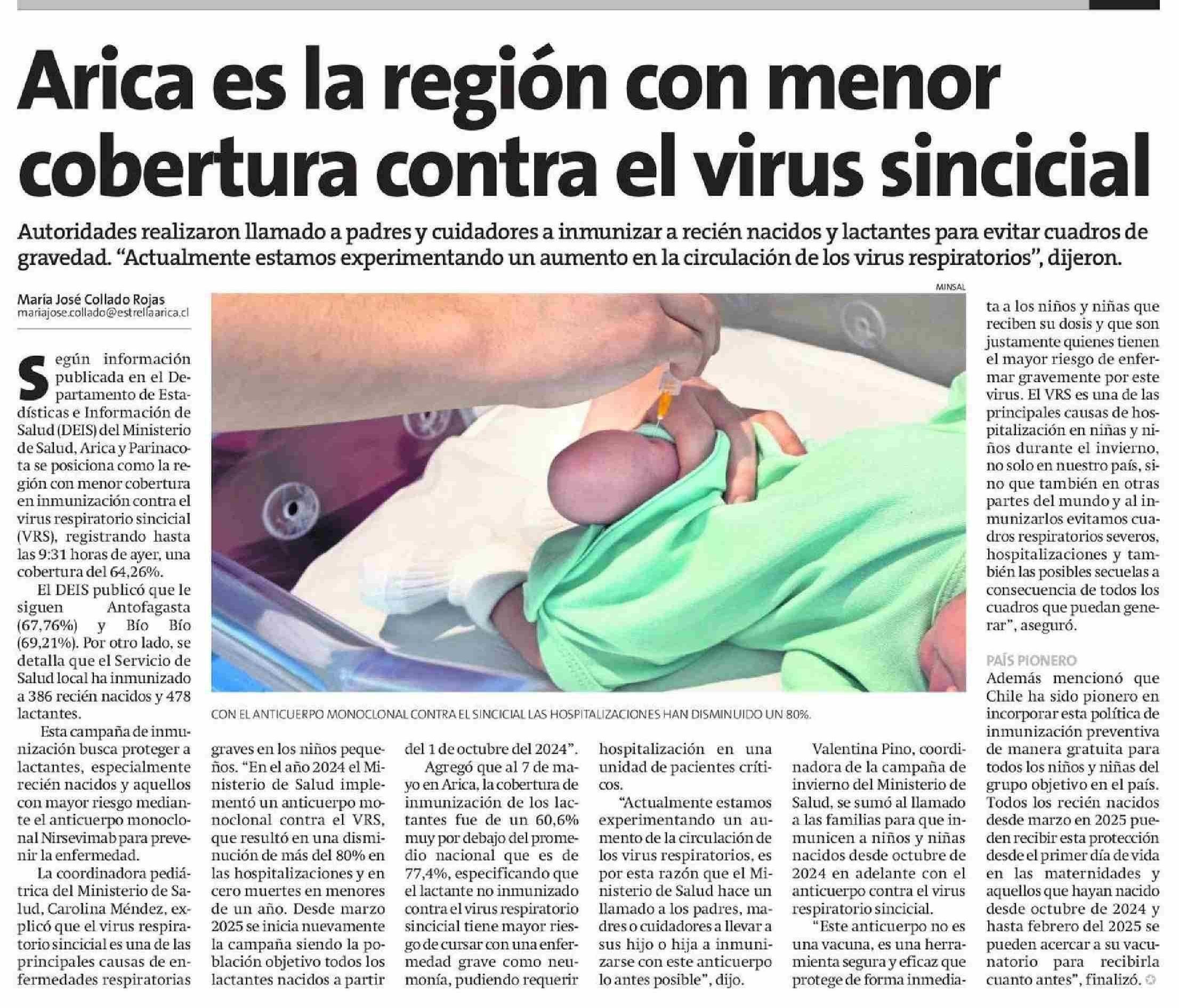 Arica es la región con menor cobertura contra el virus sincicial 14-05-2025 La Estrella de Arica |
