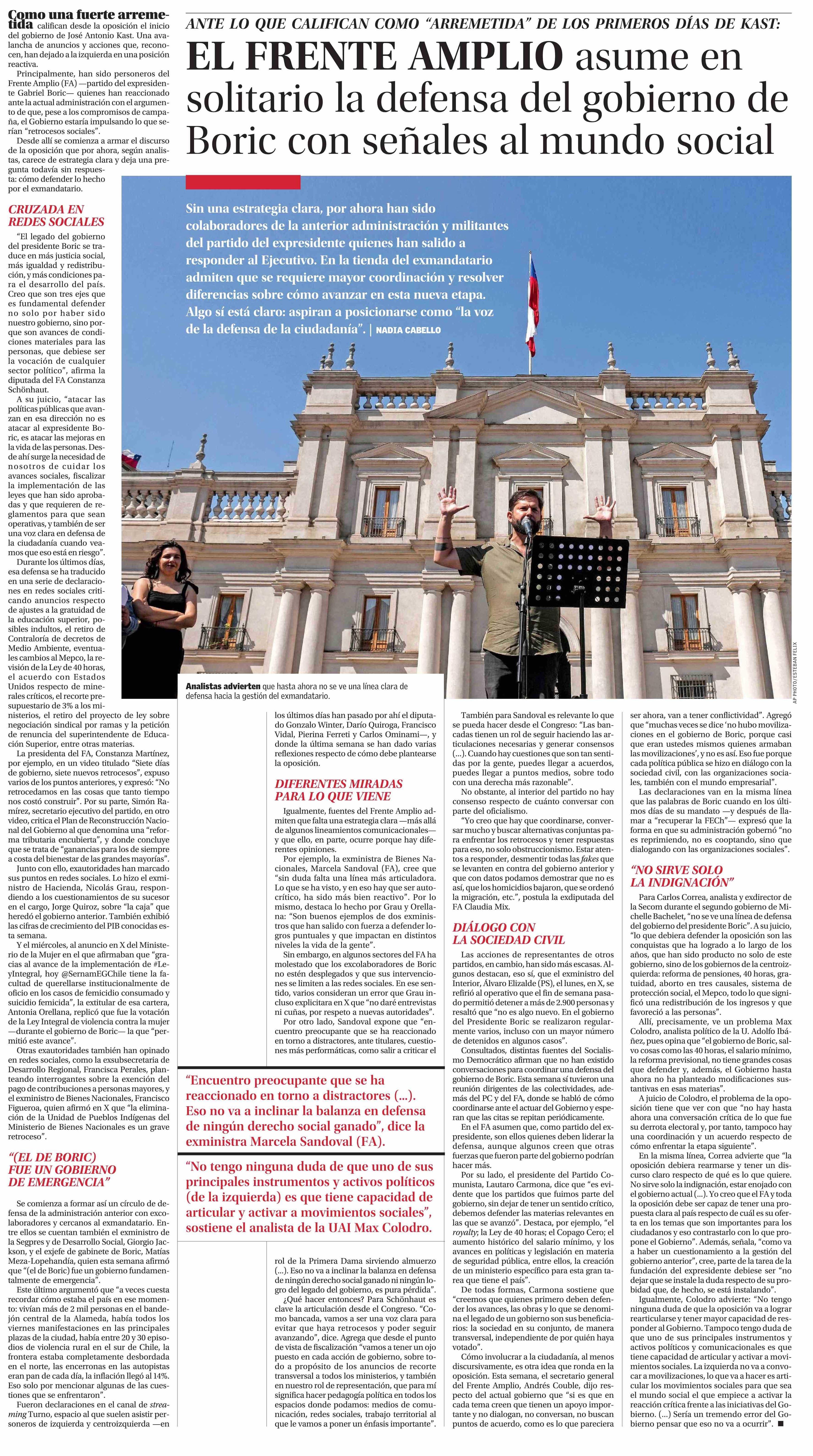 Título: EL FRENTE AMPLIO asume en solitario la defensa del gobierno de Boric con señales al mundo social