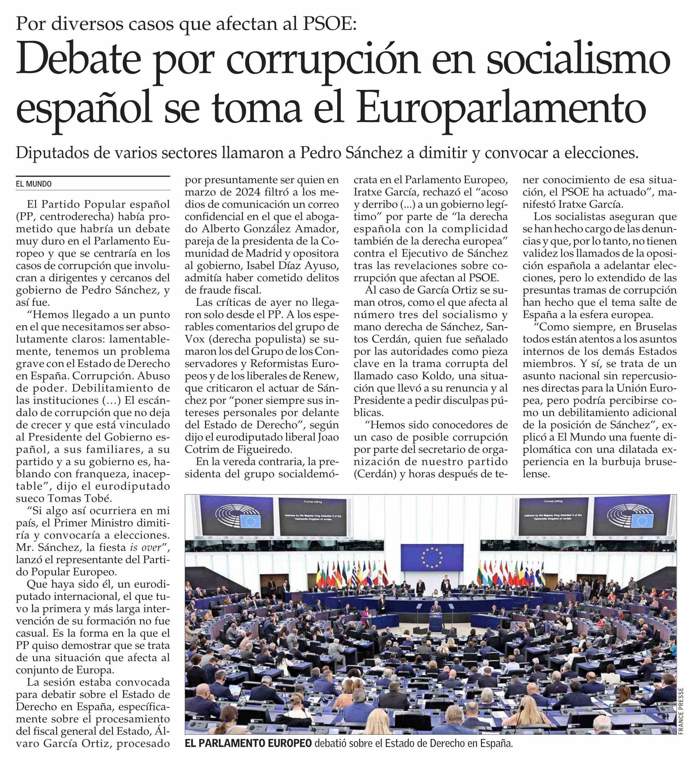 Debate por corrupción en socialismo español se toma el Europarlamento 19-06-2025 El Mercurio |