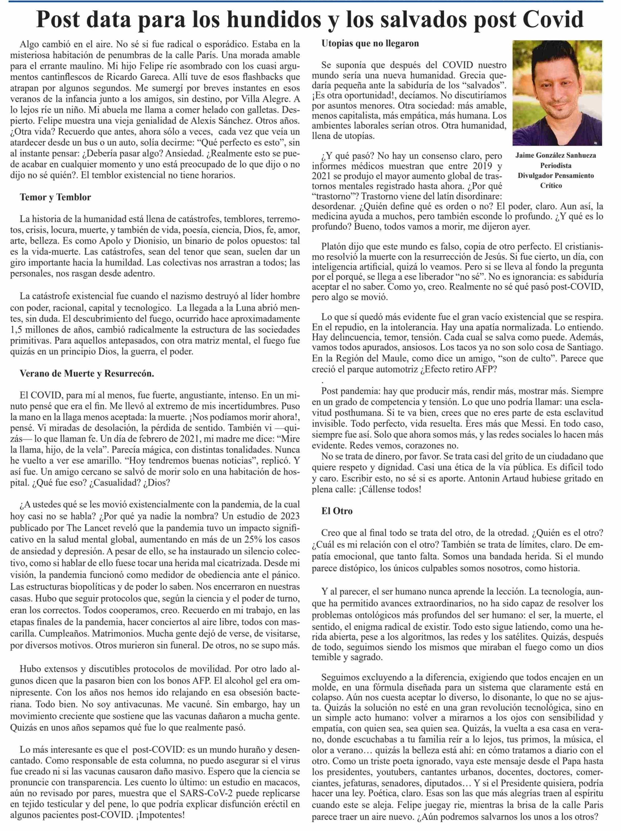 | Fecha: | 13-06-2025 | Sector: | Columnas de Opinión | Región: | Región del Maule |