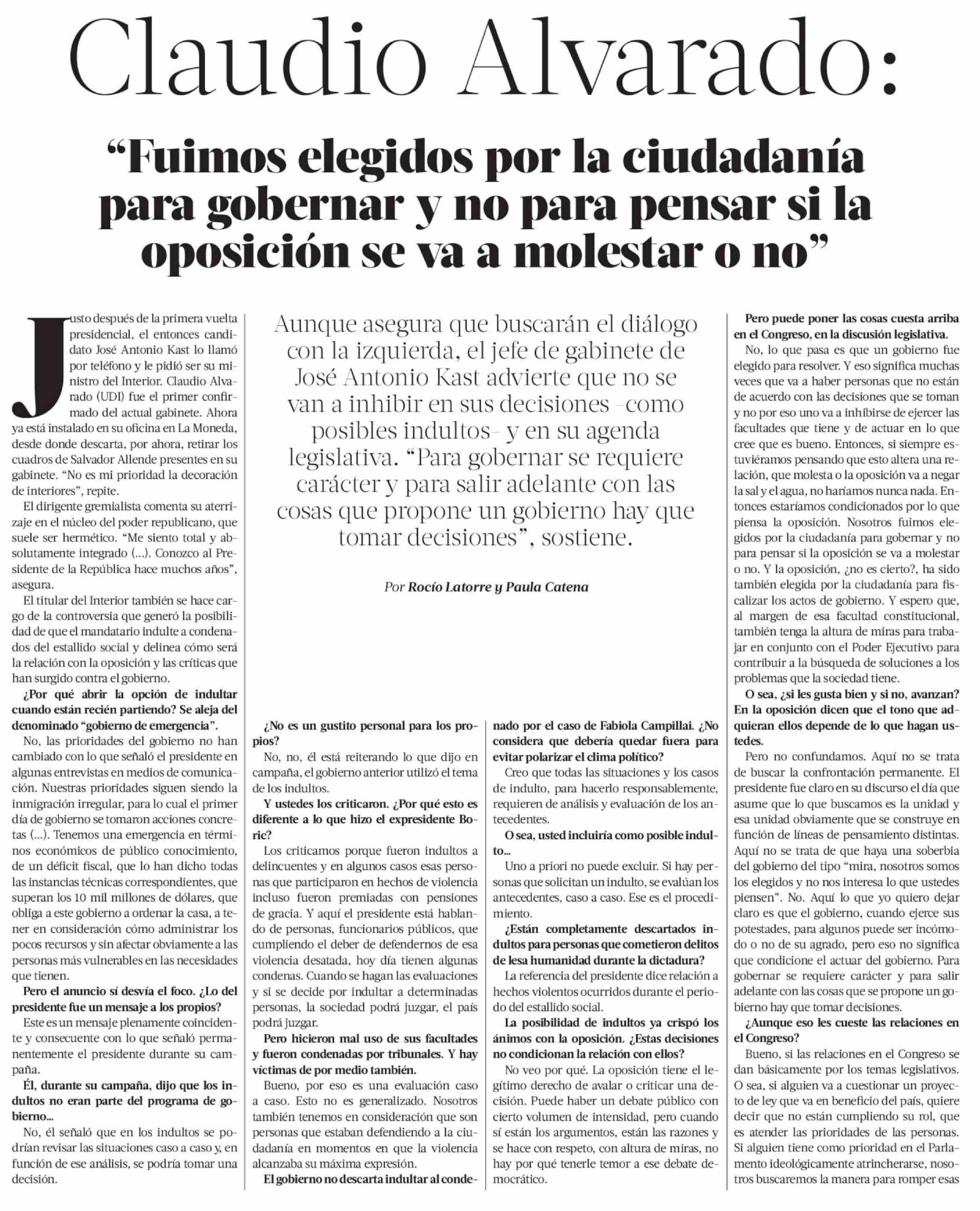 Claudio Alvarado: 15-03-2026 La Tercera |
