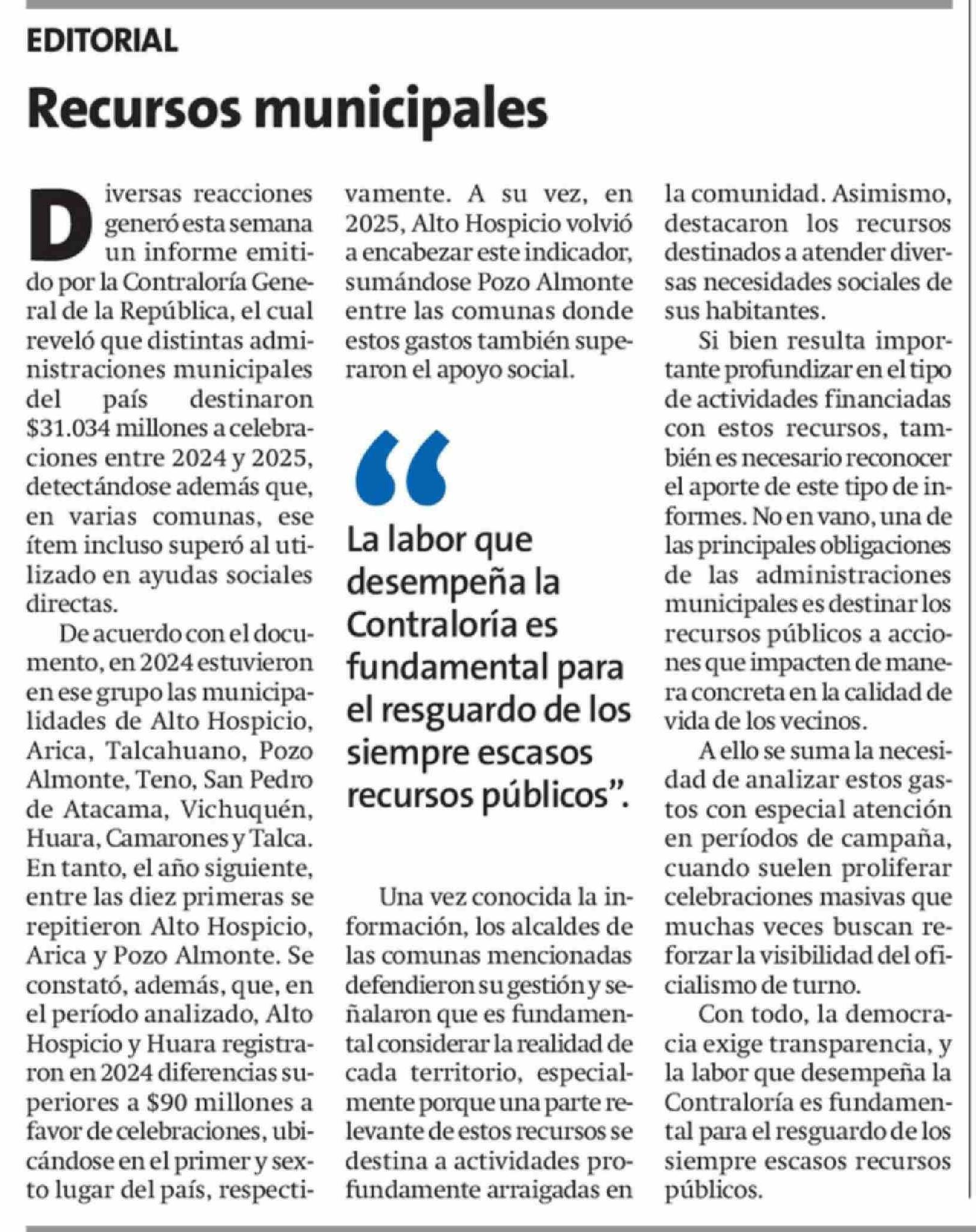 Editorial: Recursos municipales 11-04-2026 La Estrella de Iquique |
