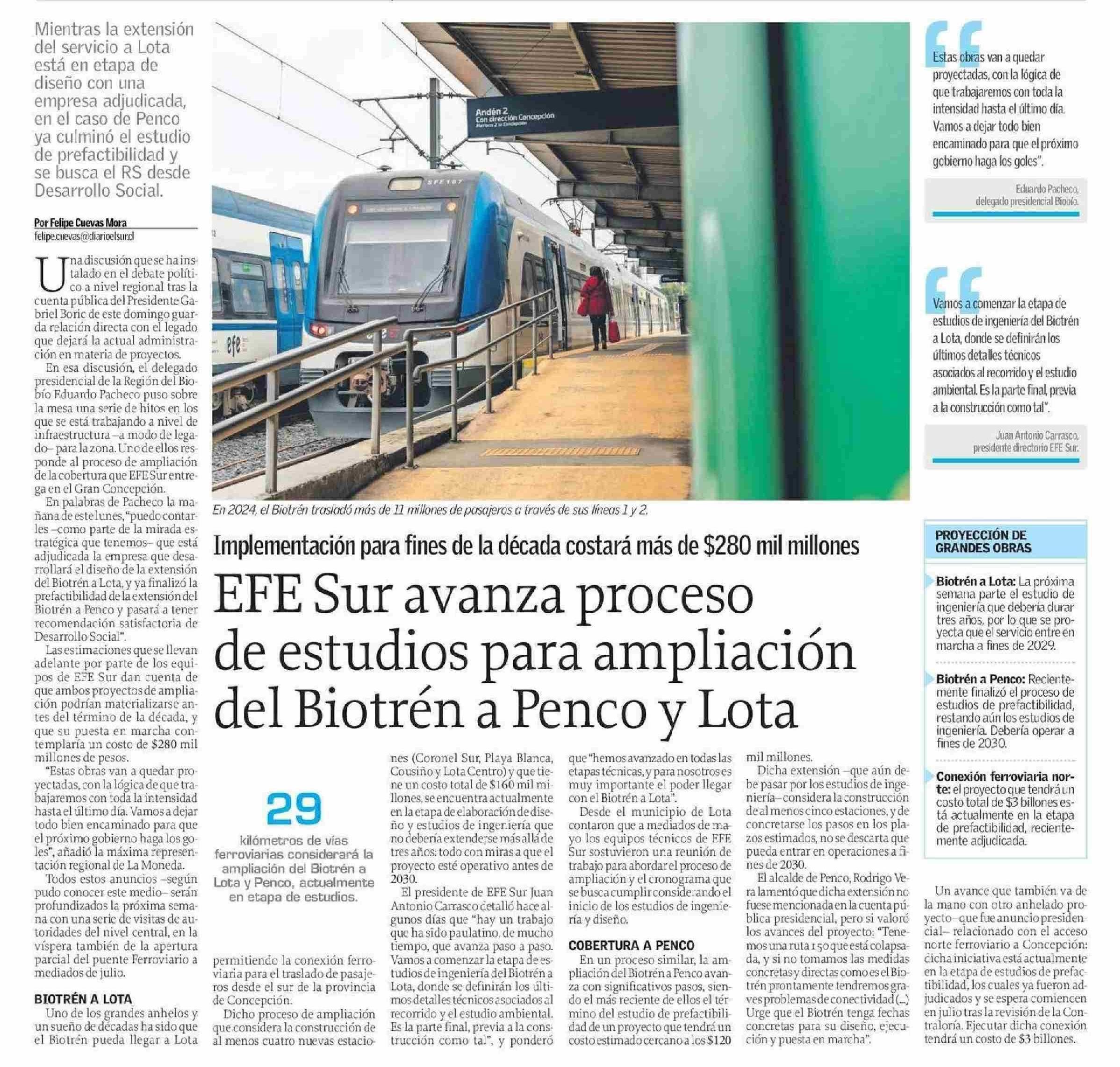 EFE Sur avanza proceso de estudios para ampliación del Biotrén a Penco y Lota 05-06-2025 El Sur |