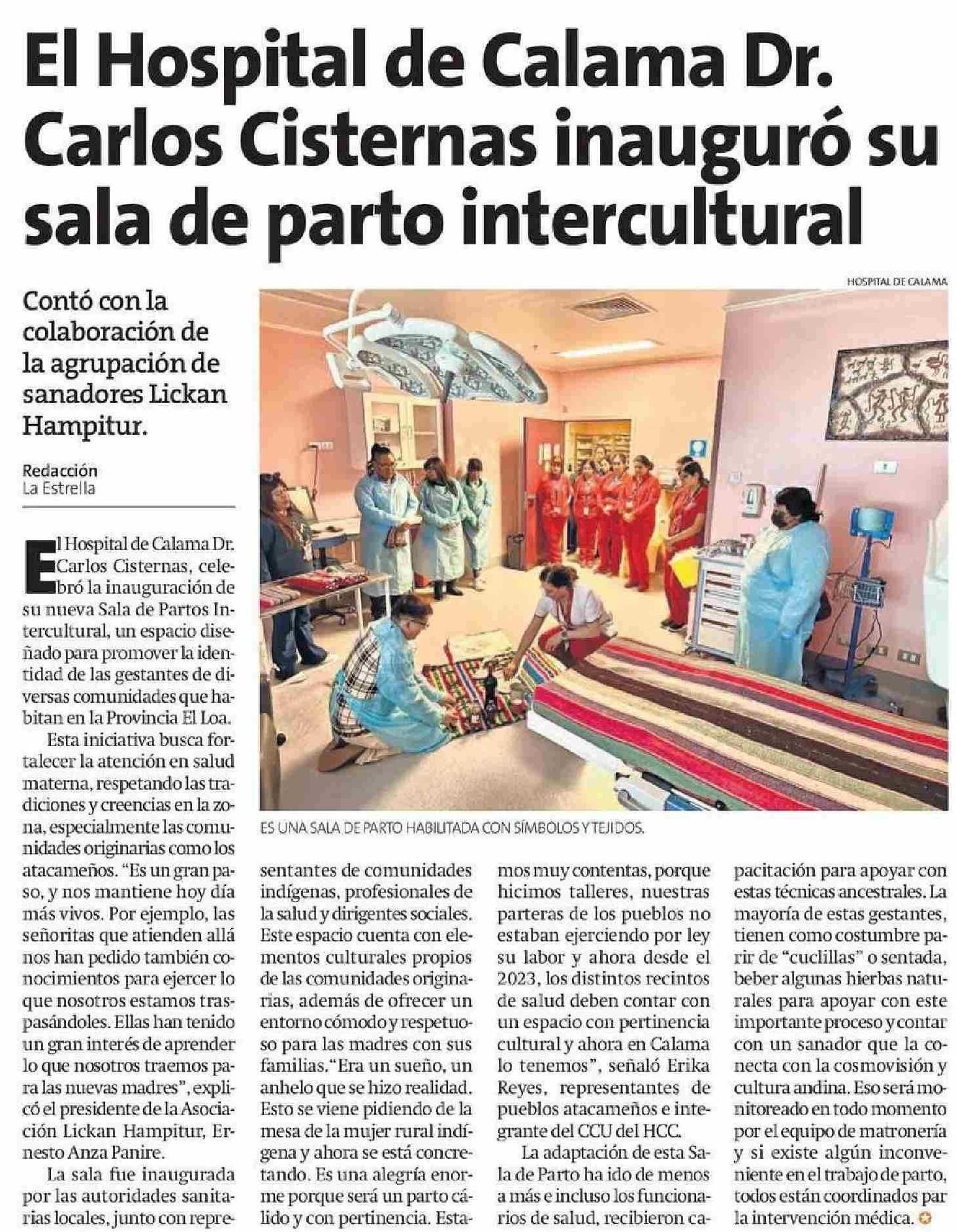 El Hospital de Calama Dr. Carlos Cisternas inauguró su sala de parto intercultural 10-06-2025 La Estrella de Antofagasta |
