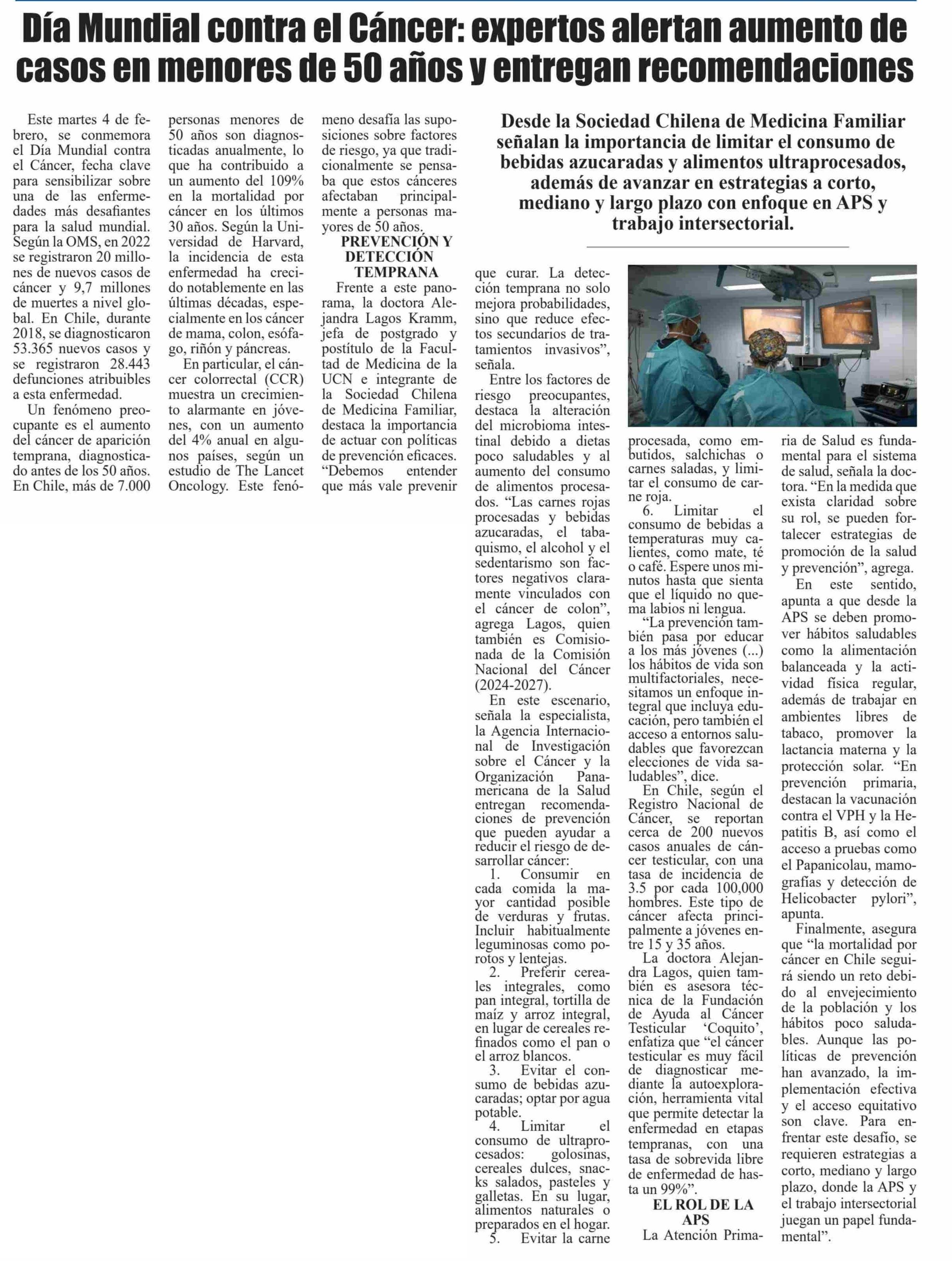 | Título: | Día Mundial contra el Cáncer: expertos alertan aumento de casos en menores de 50 años y entregan recomendaciones |
