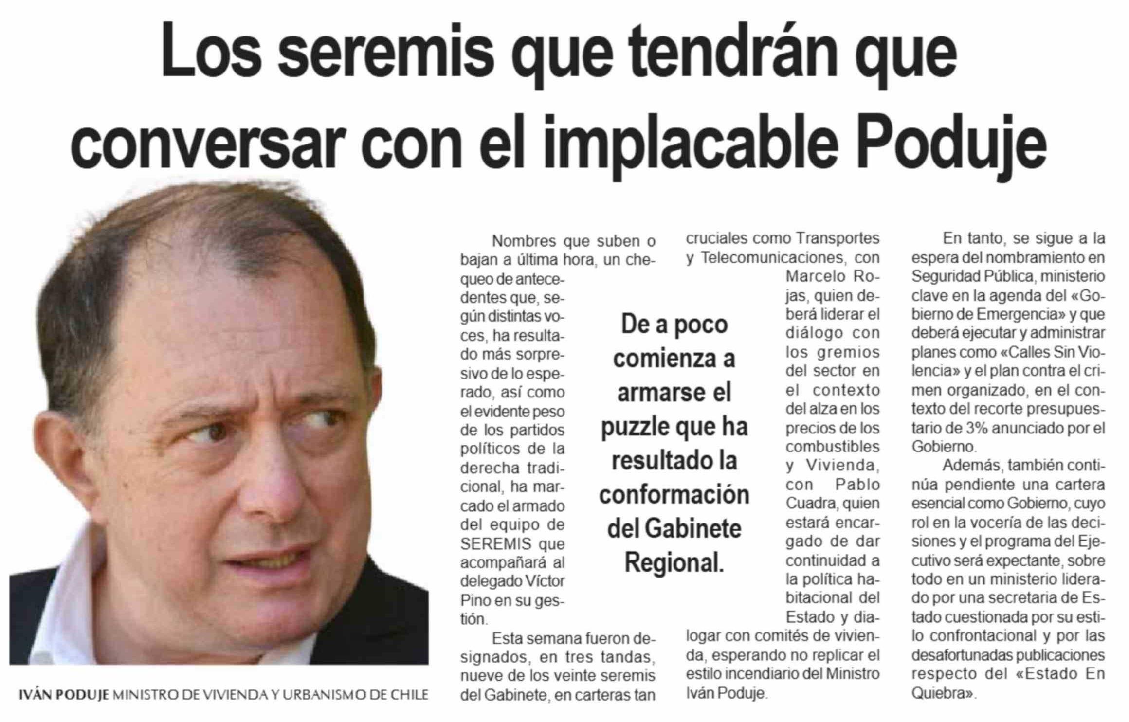 | Título: | Los seremis que tendrán que conversar con el implacable Poduje |