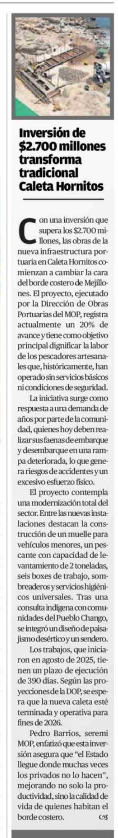 Título: Inversión de $2.700 millones transforma tradicional Caleta Hornitos