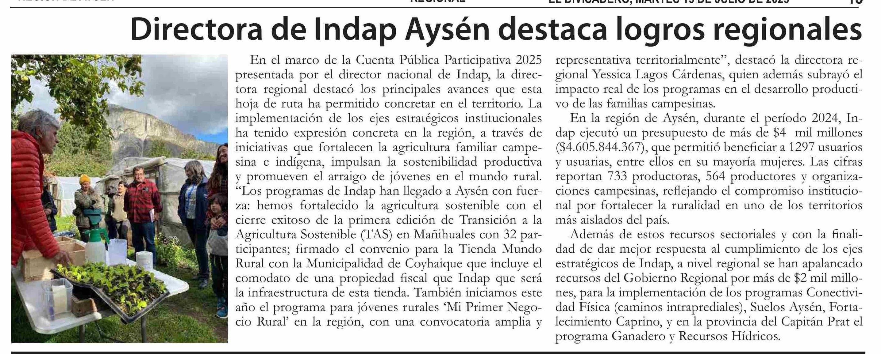 Directora de Indap Aysen destaca logros regionales 15-07-2025 El Divisadero |