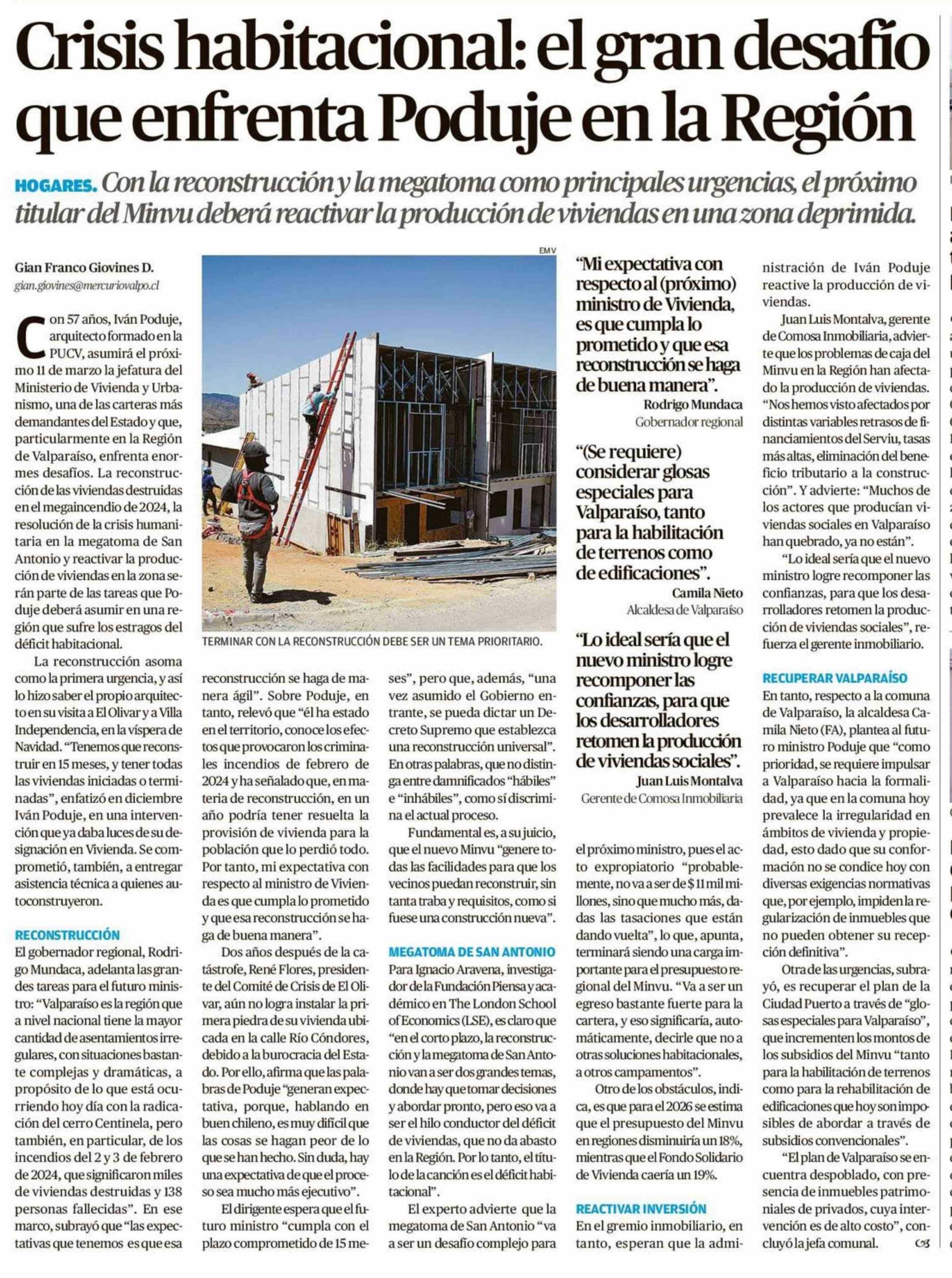 Crisis habitacional: el gran desafio que enfrenta Poduje en la Región 21-01-2026 El Mercurio de Valparaíso |