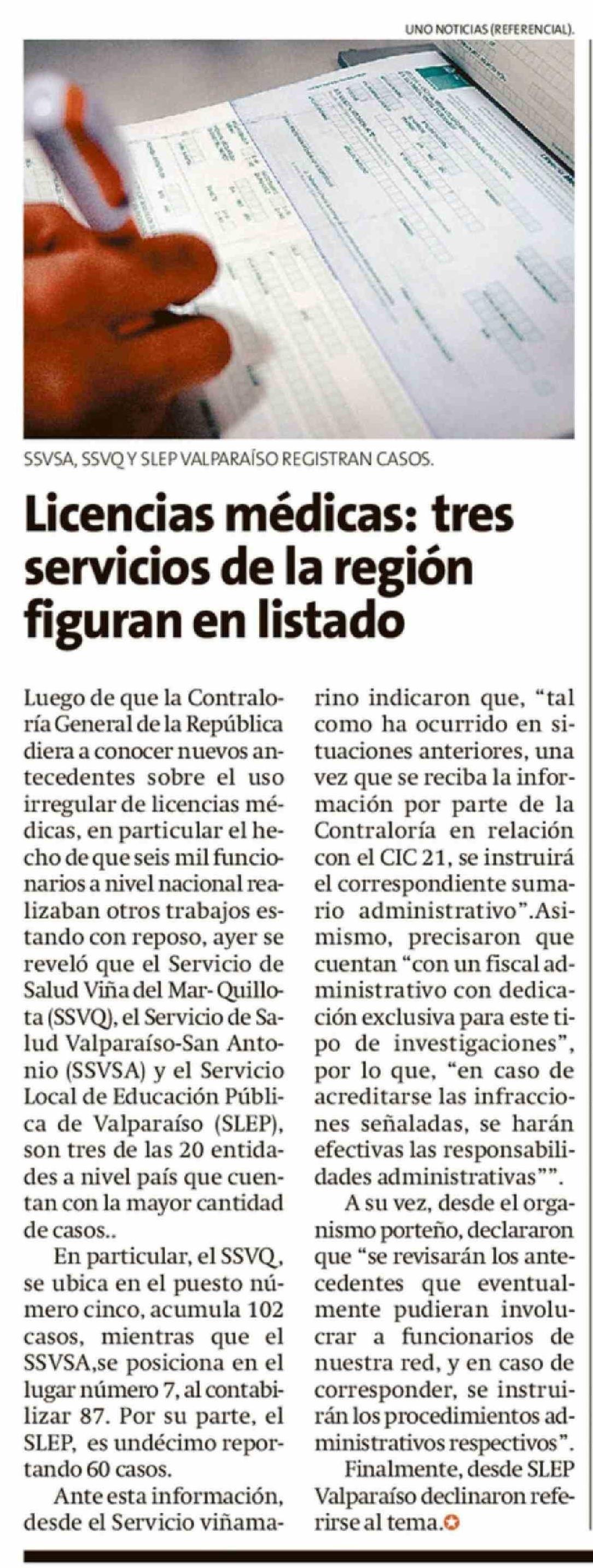 | Título: | Licencias médicas: tres servicios de la región figuran en listado |
