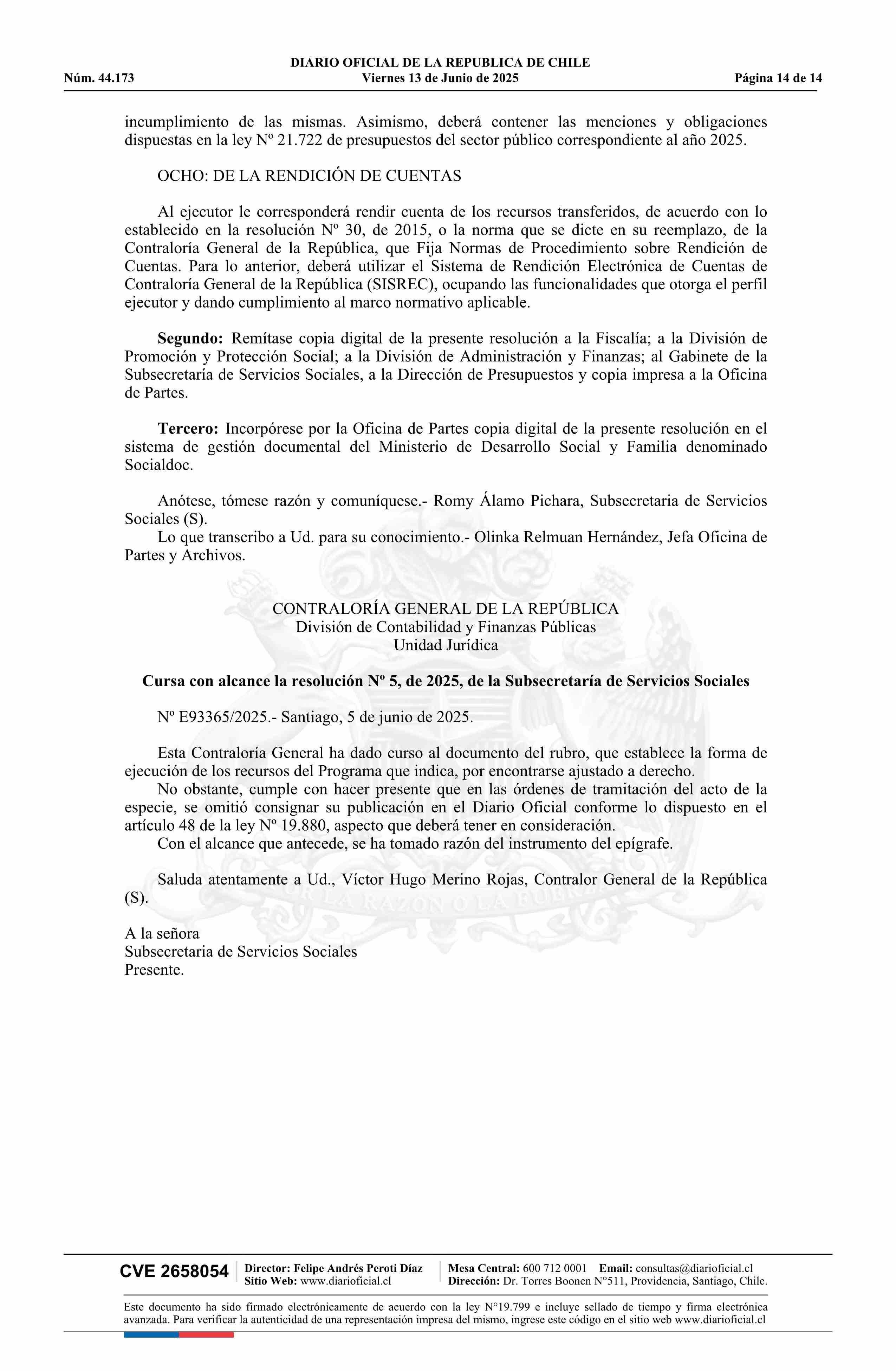 | Título: | Resolución número 5, de 2025.- Establece la forma de ejecución de los recursos, incluidos los componentes del programa y beneficiarios de la Asignación 24-03-351 Red Local de Apoyos y Cuidados |