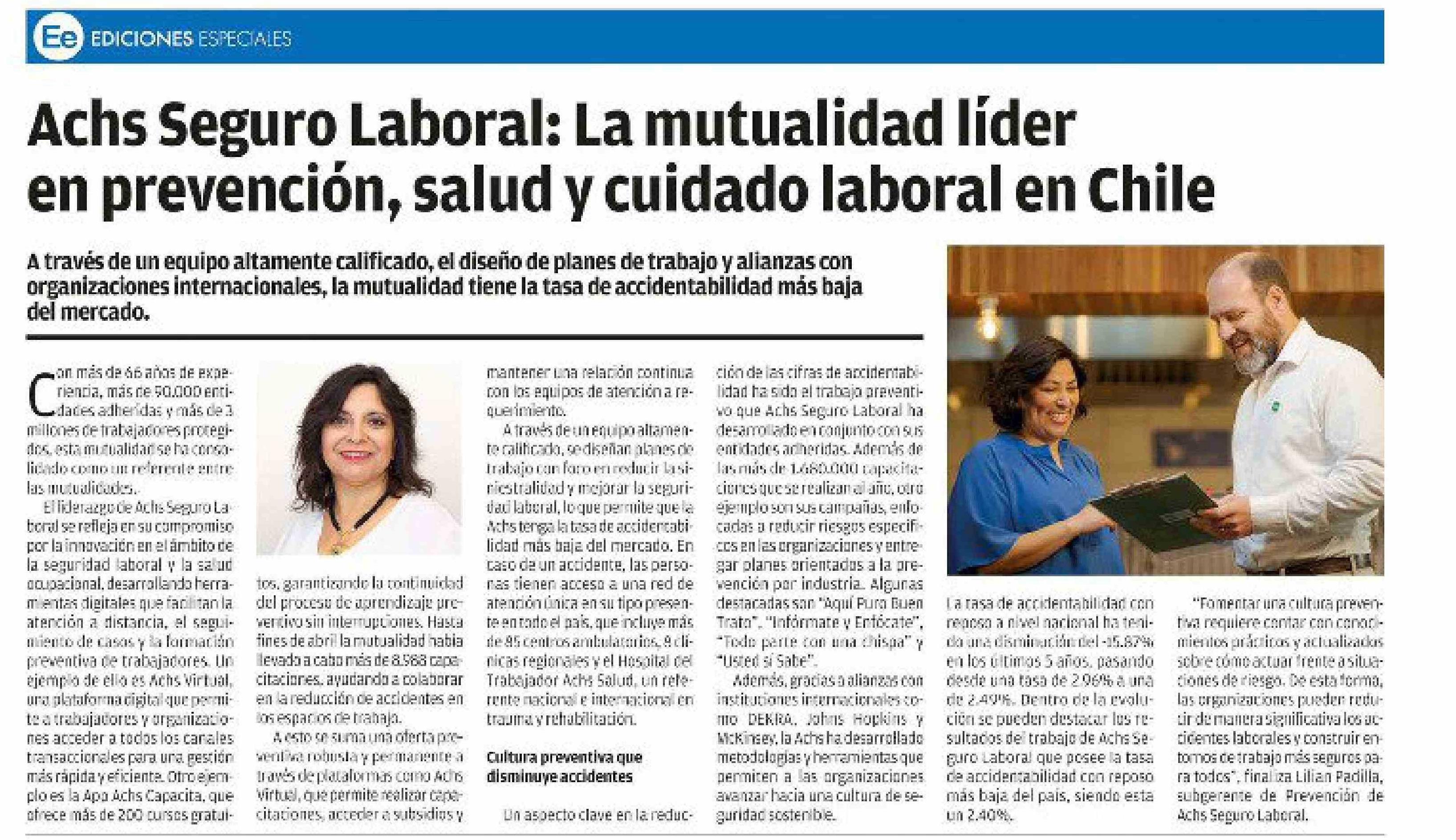 Achs Seguro Laboral: La mutualidad lider en prevención, salud y cuidado laboral en Chile 22-05-2025 El Rancagüino |