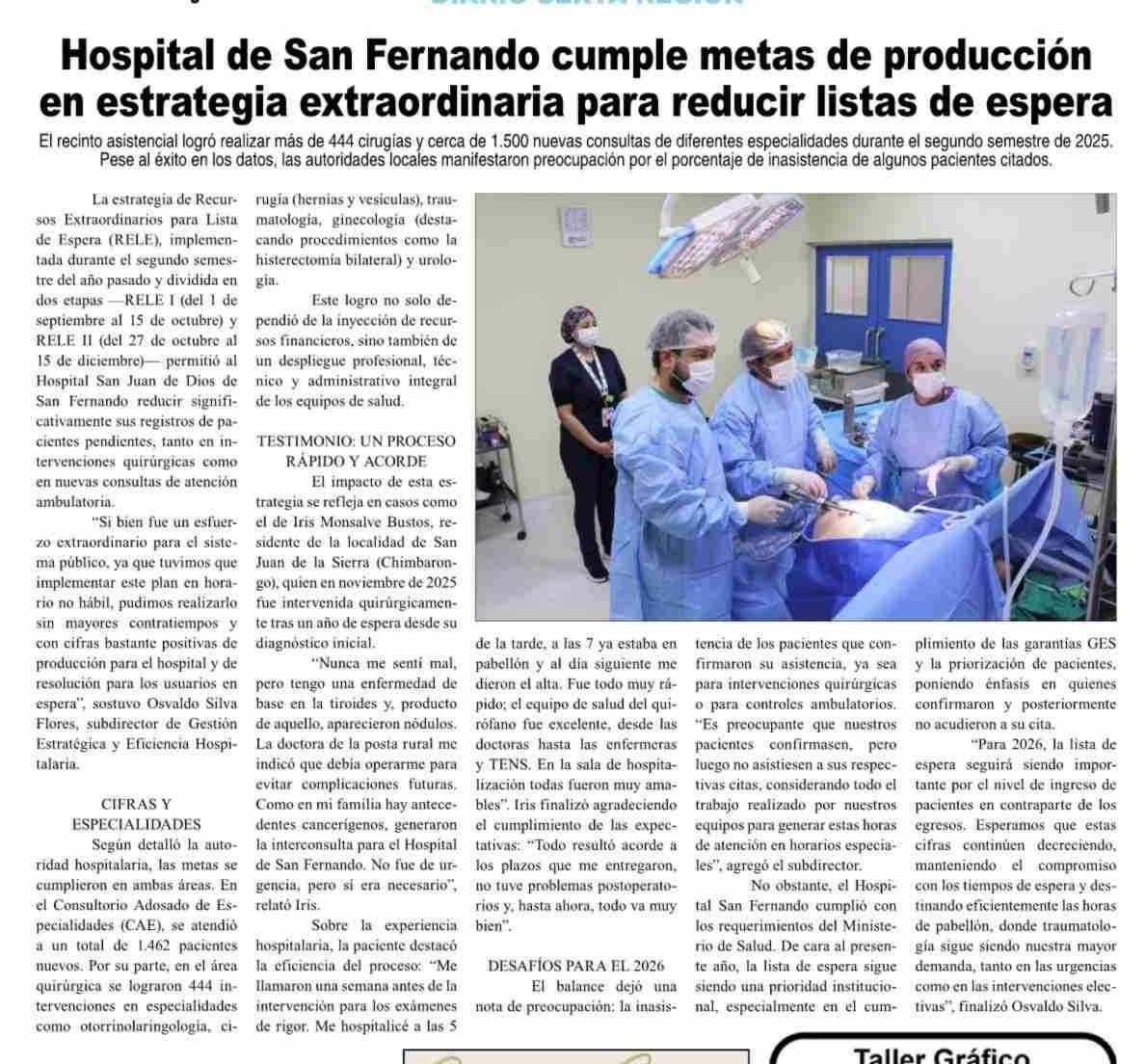 Hospital de San Fernando cumple metas de producción en estrategia extraordinaria para reducir listas de espera 16-01-2026 Diario VI Región |