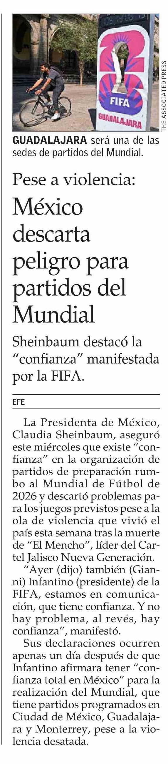 | Título: | México descarta peligro para partidos del Mundial |