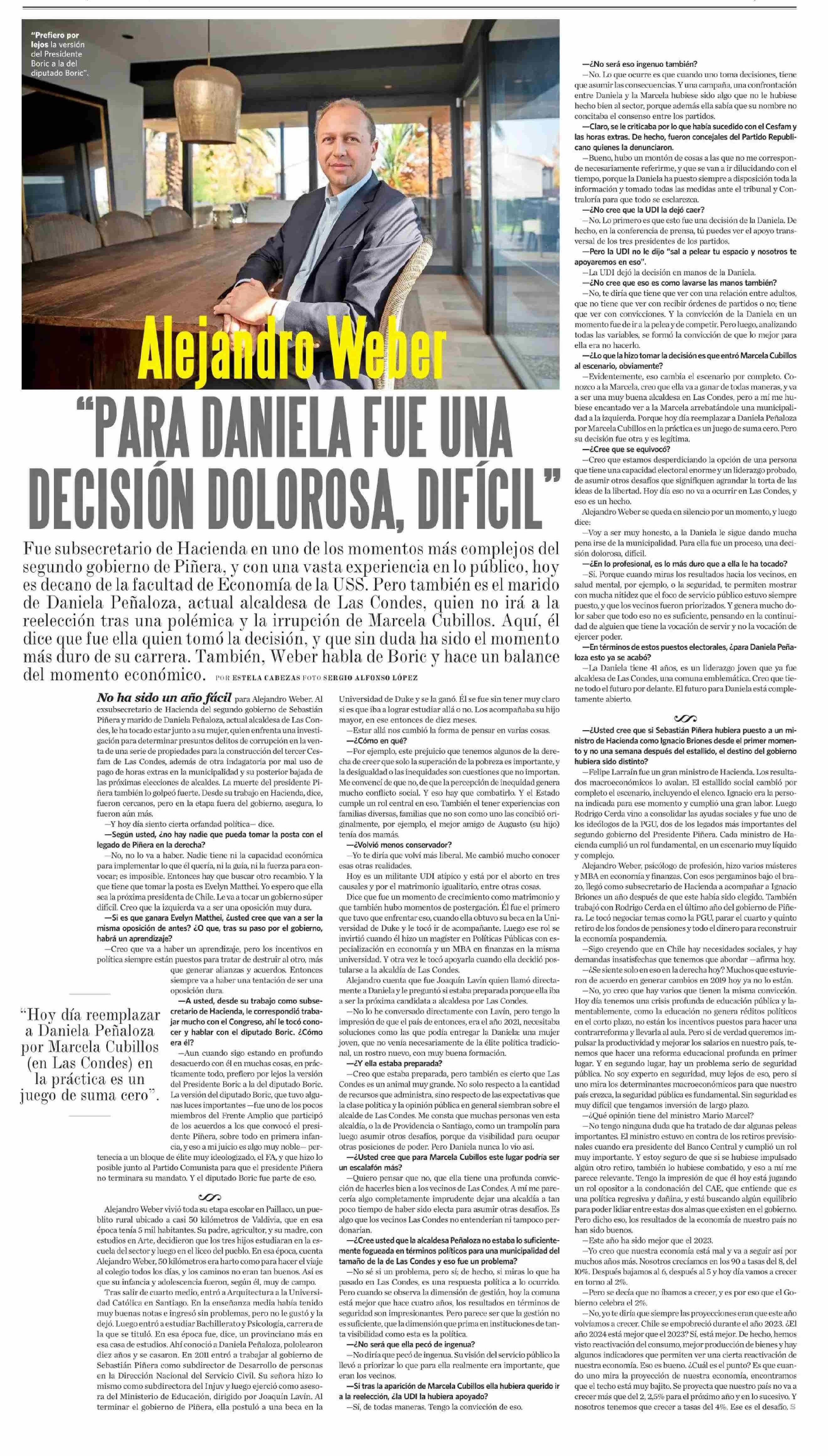 Alejandro Weber "PARA DANIELA FUE UNA DECISIÓN DOLOROSA, DIFÍCIL 25-05-2024 El Mercurio |