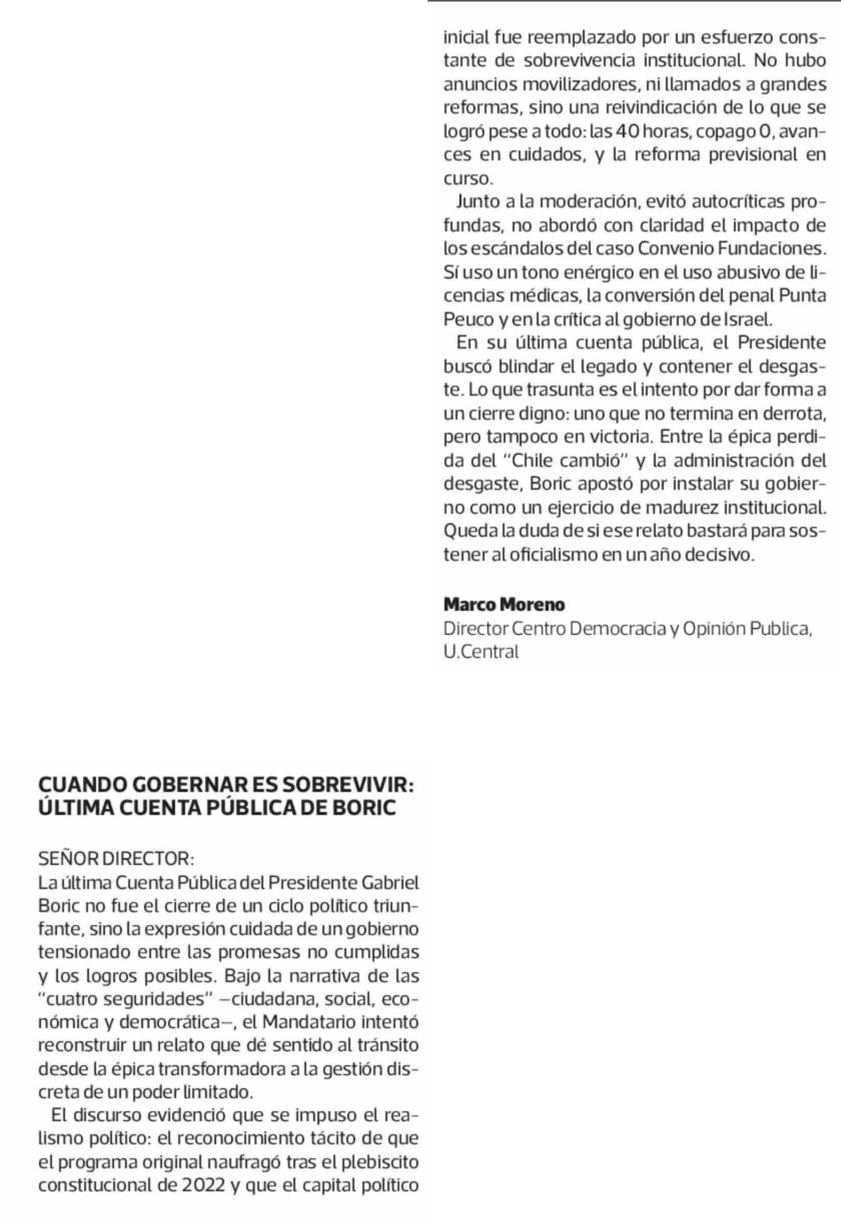 CARTAS: CUANDO GOBERNAR ES SOBREVIVIR: ULTIMA CUENTA PUBLICA DE BORIC 02-06-2025 La Tercera |