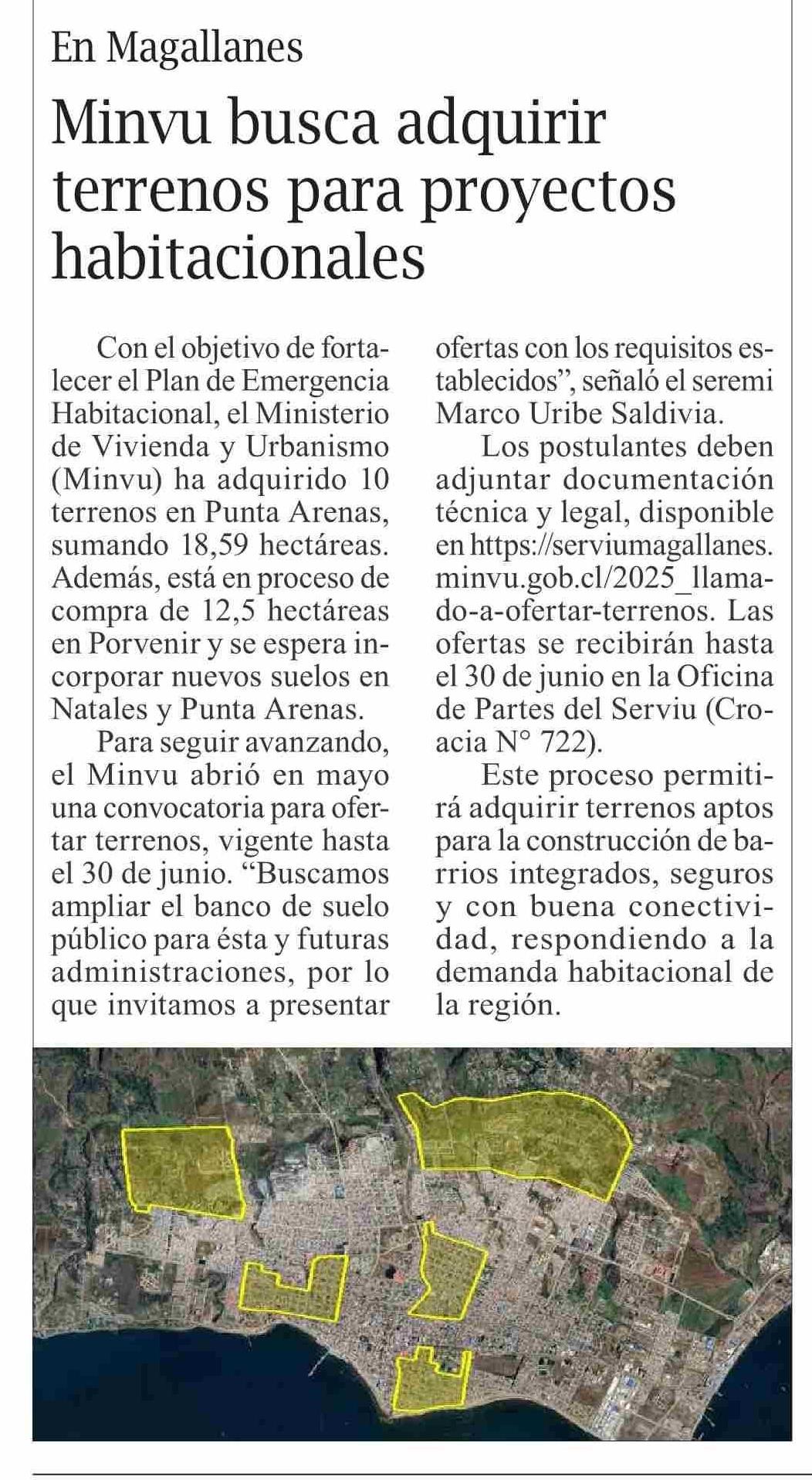 Minvu busca adquirir terrenos para proyectos habitacionales 31-05-2025 El Pingüino |