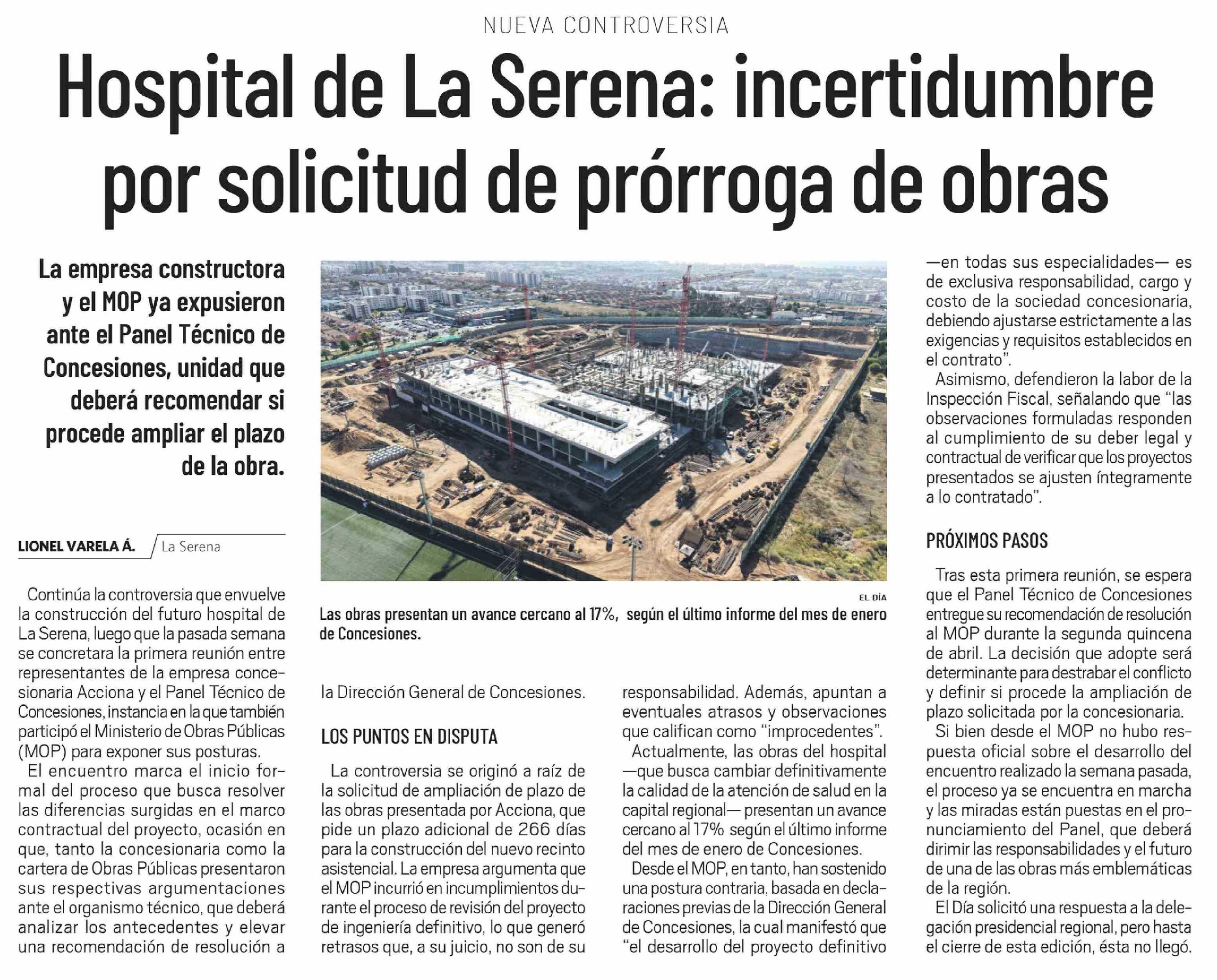 Hospital de La Serena: incertidumbre por solicitud de prórroga de obras 24-03-2026 El Día |
