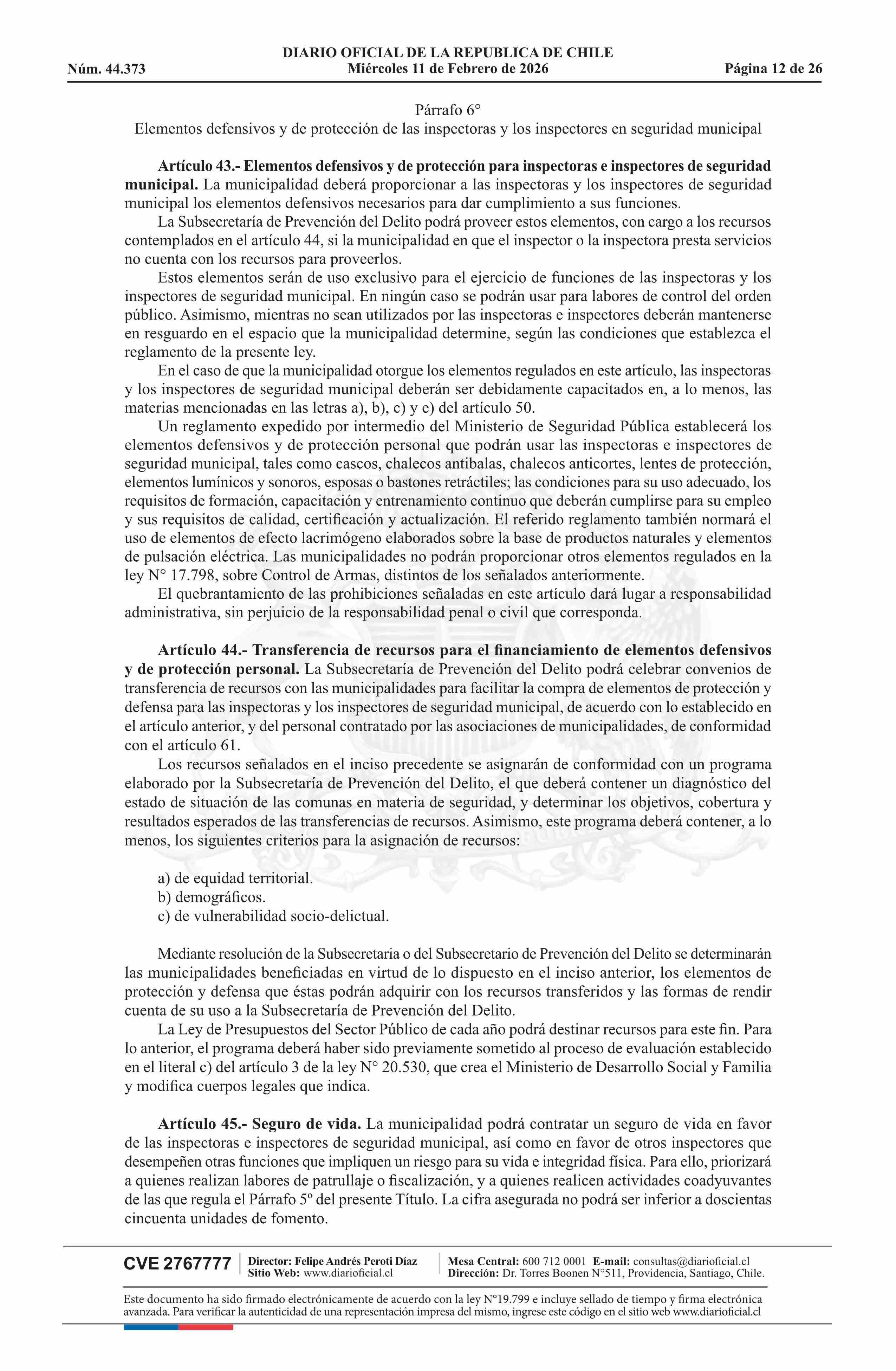 | Título: | Ley número 21.802.- Modifica la Ley N° 18.695, Orgánica Constitucional de Municipalidades, y otros cuerpos legales, con el objeto de fortalecer la institucionalidad municipal en materia de seguridad pública y prevención del delito |