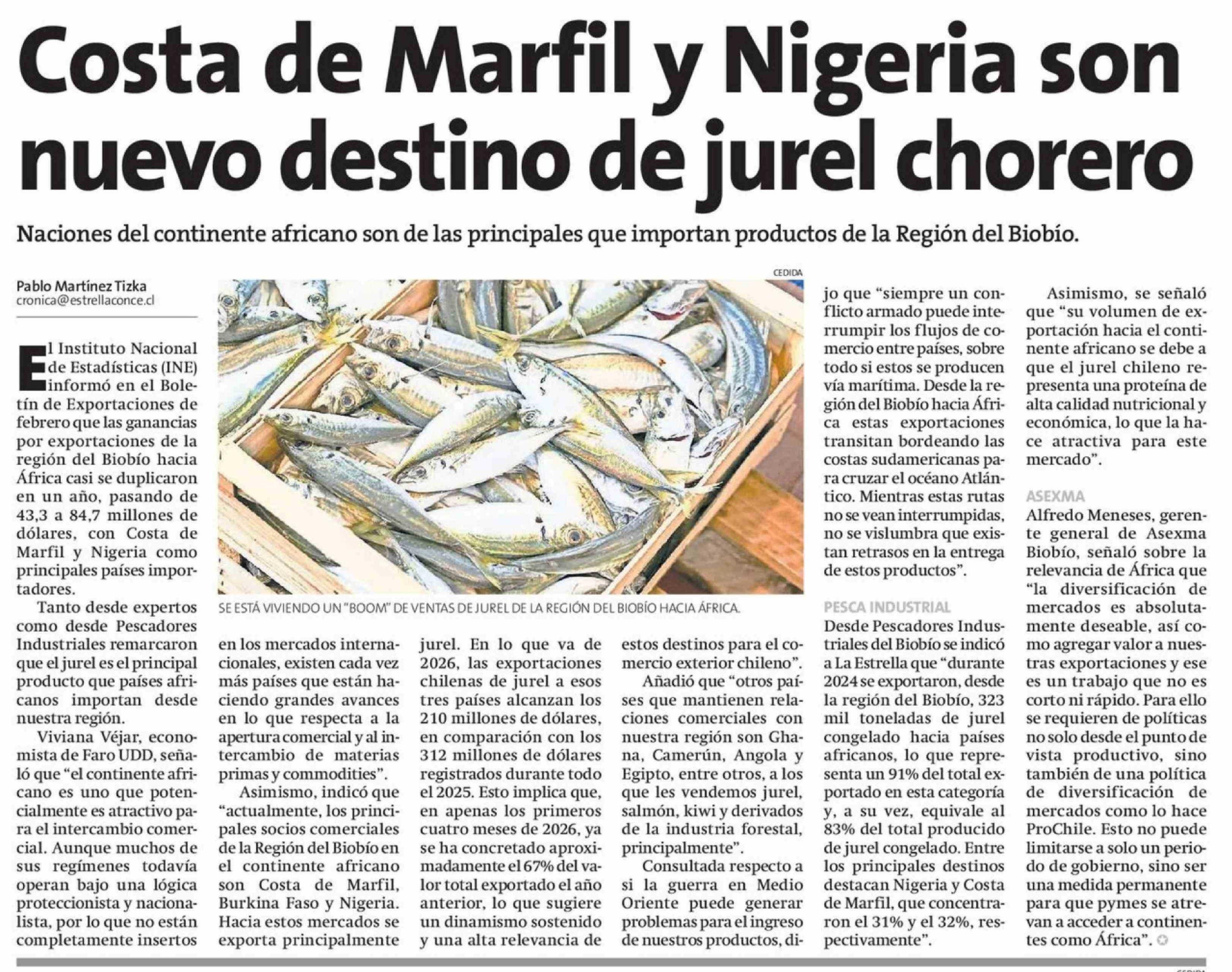 Costa de Marfil y Nigeria son nuevo destino de jurel chorero 16-04-2026 La Estrella de Concepción |