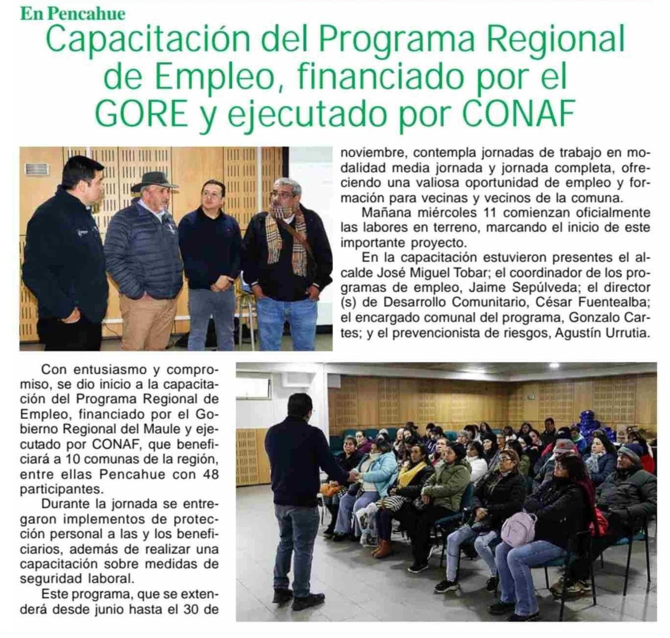 Capacitación del Programa Regional de Empleo, financiado por el GORE y ejecutado por CONAF 15-06-2025 Maule Hoy |