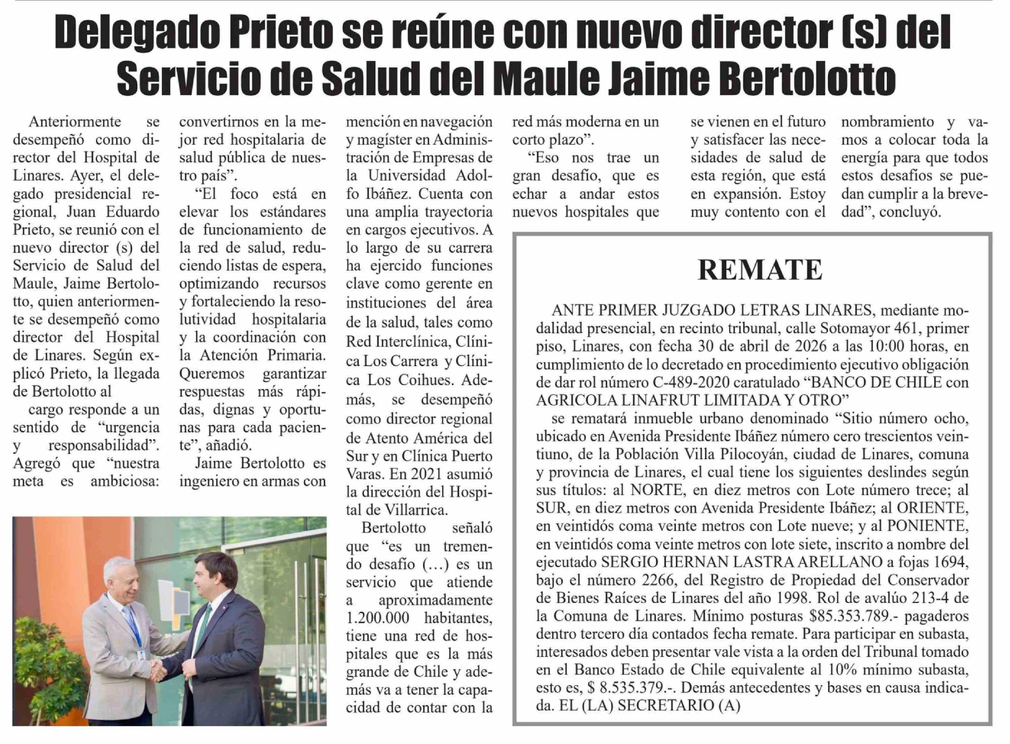 Fecha: 20-03-2026 Sector: Noticia general Región: Región del Maule